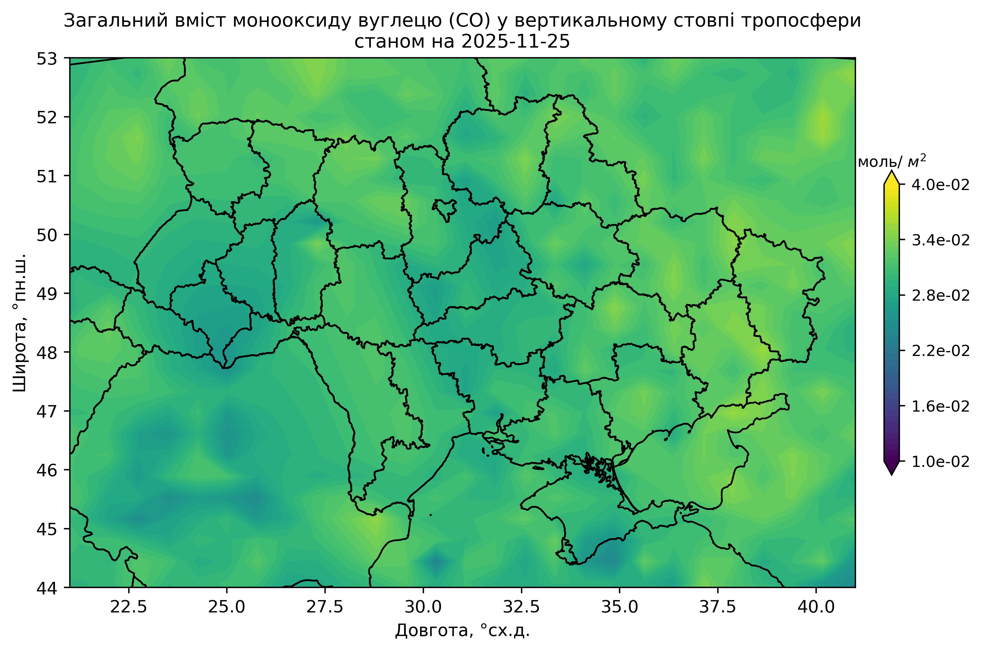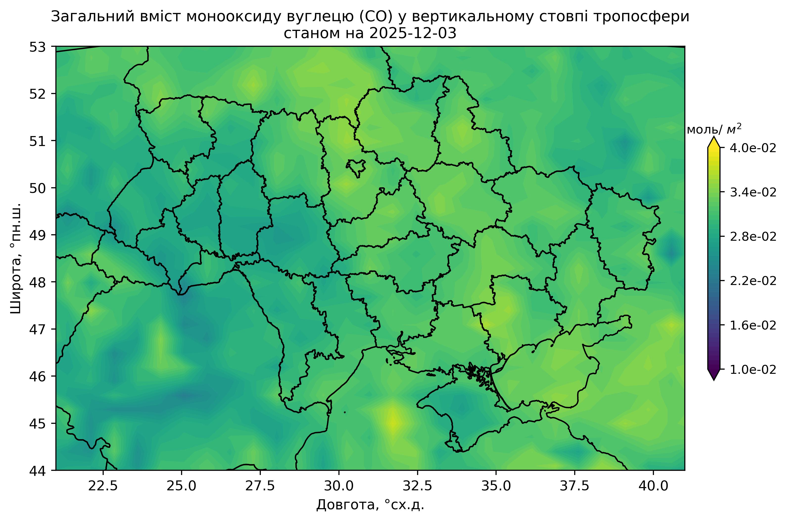 Загальний вміст монооксиду вуглецю (CO) у вертикальному стовпі атмосфери