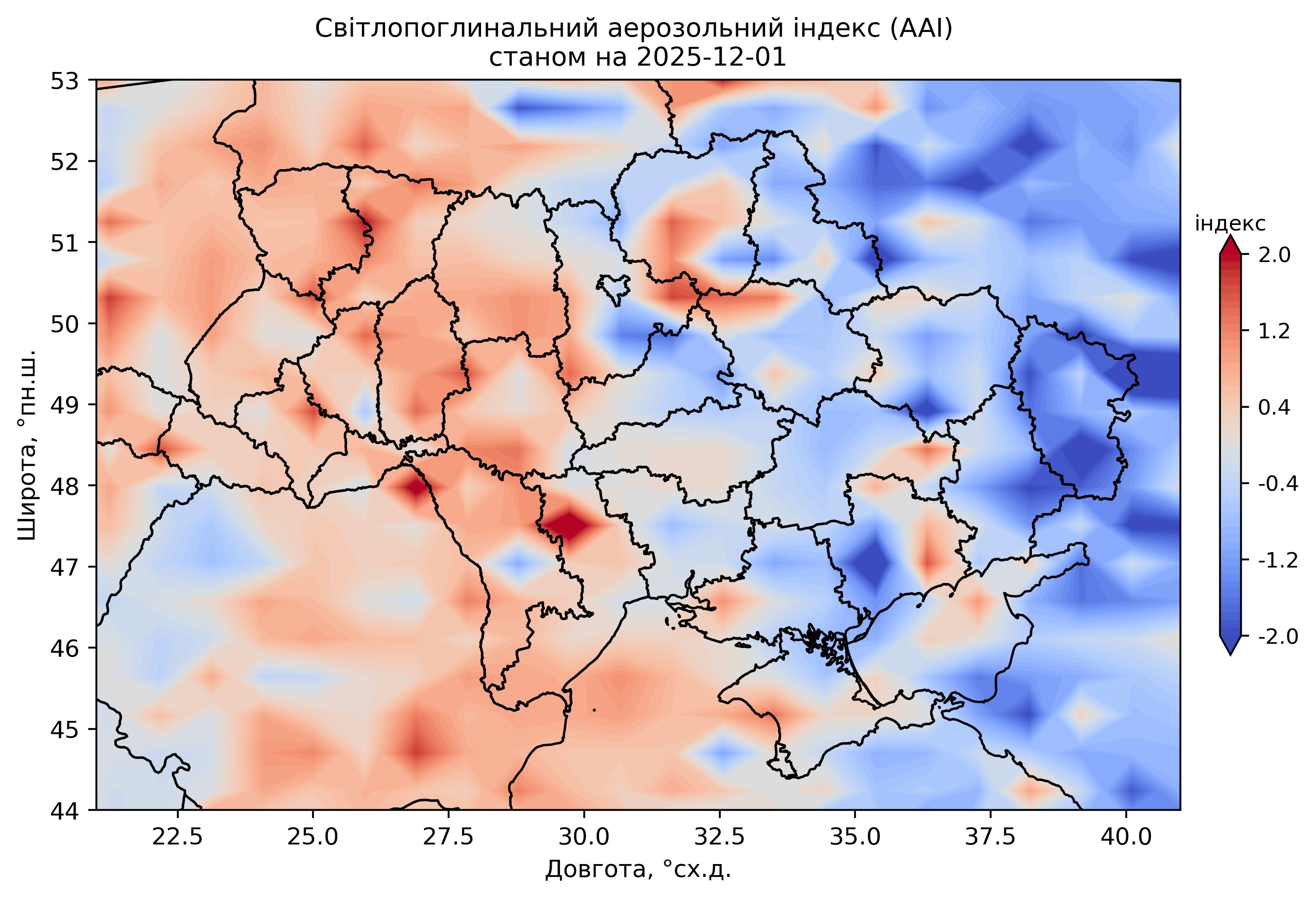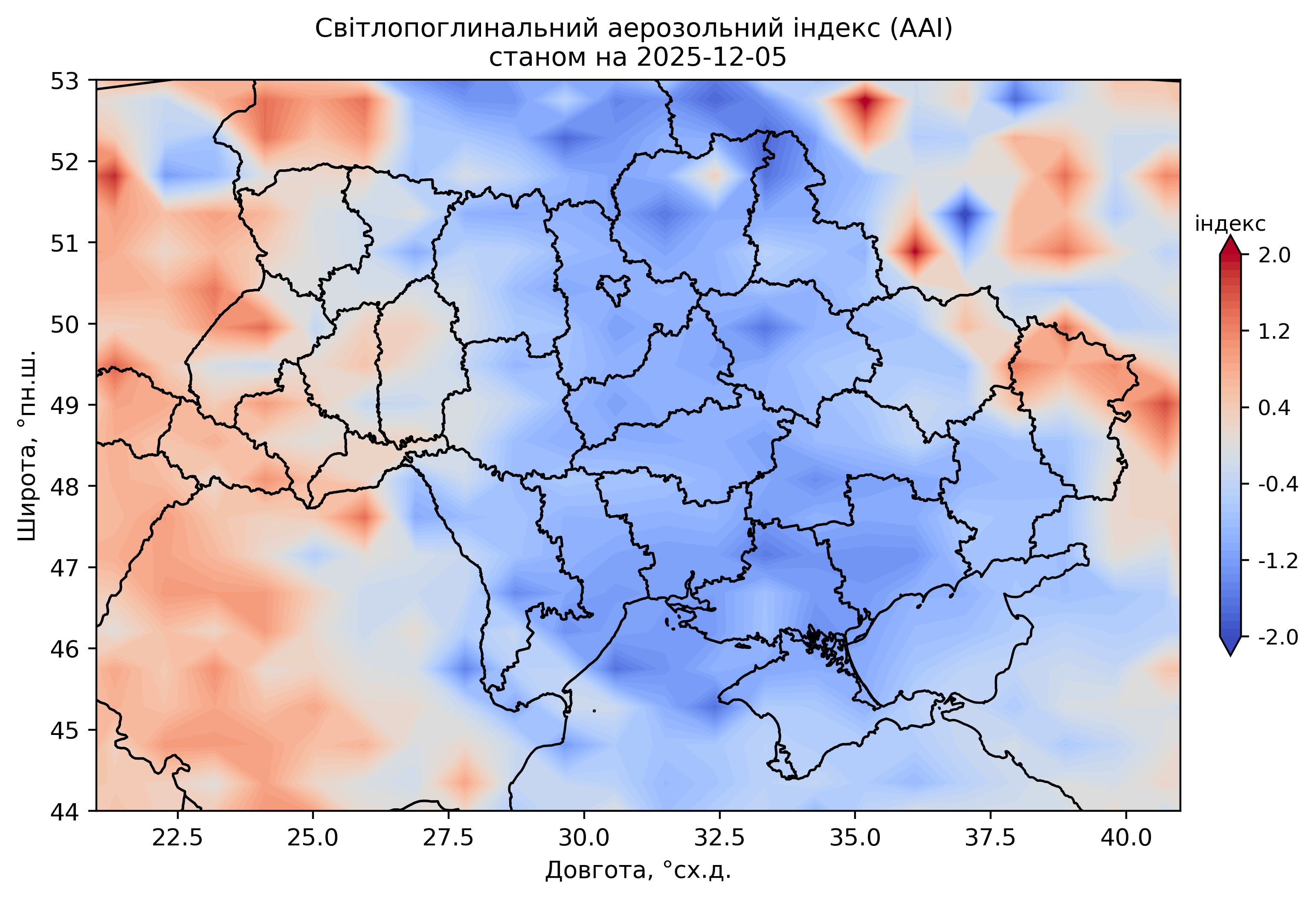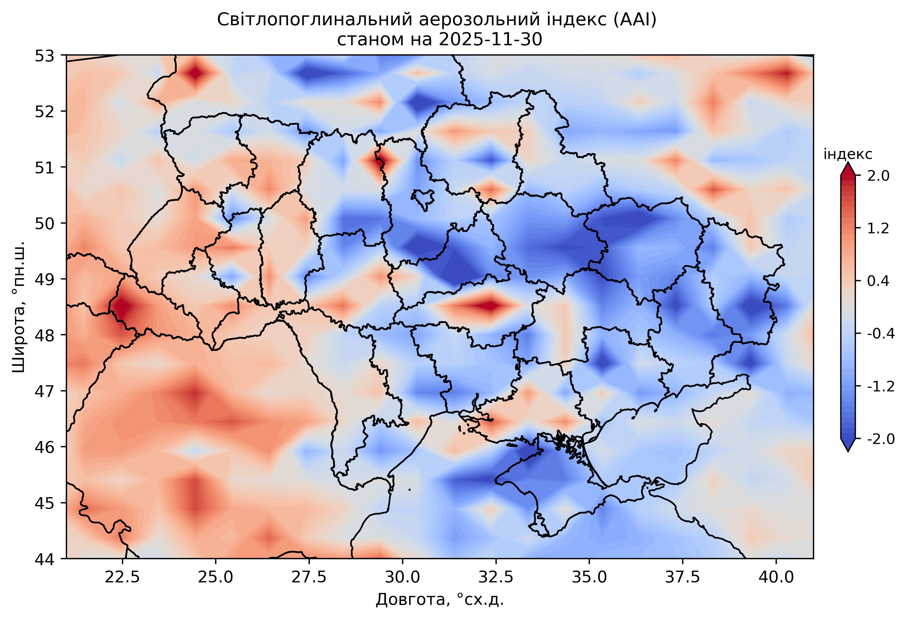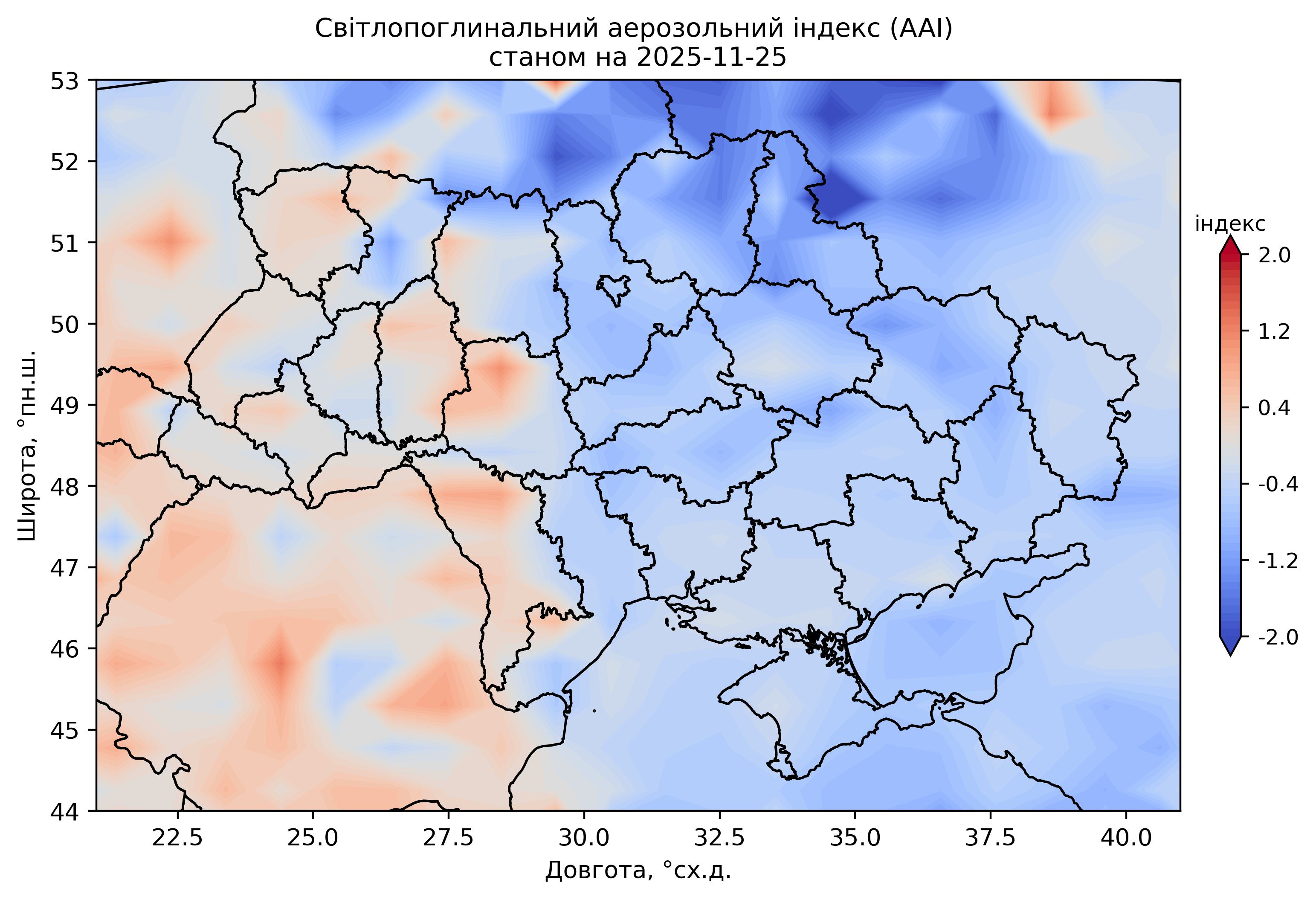 Світлопоглинальний аерозольний індекс (AAI) 2025 р.