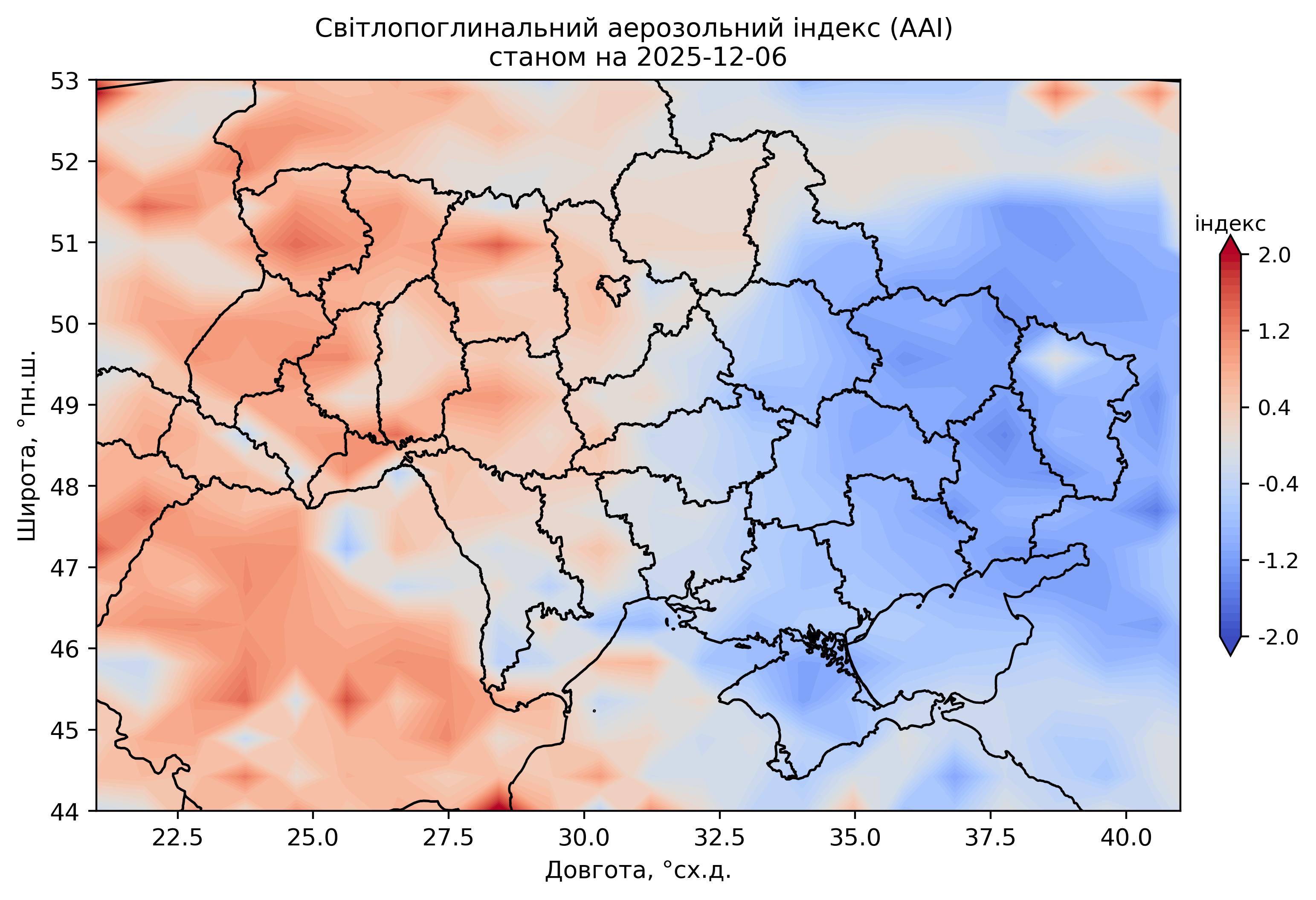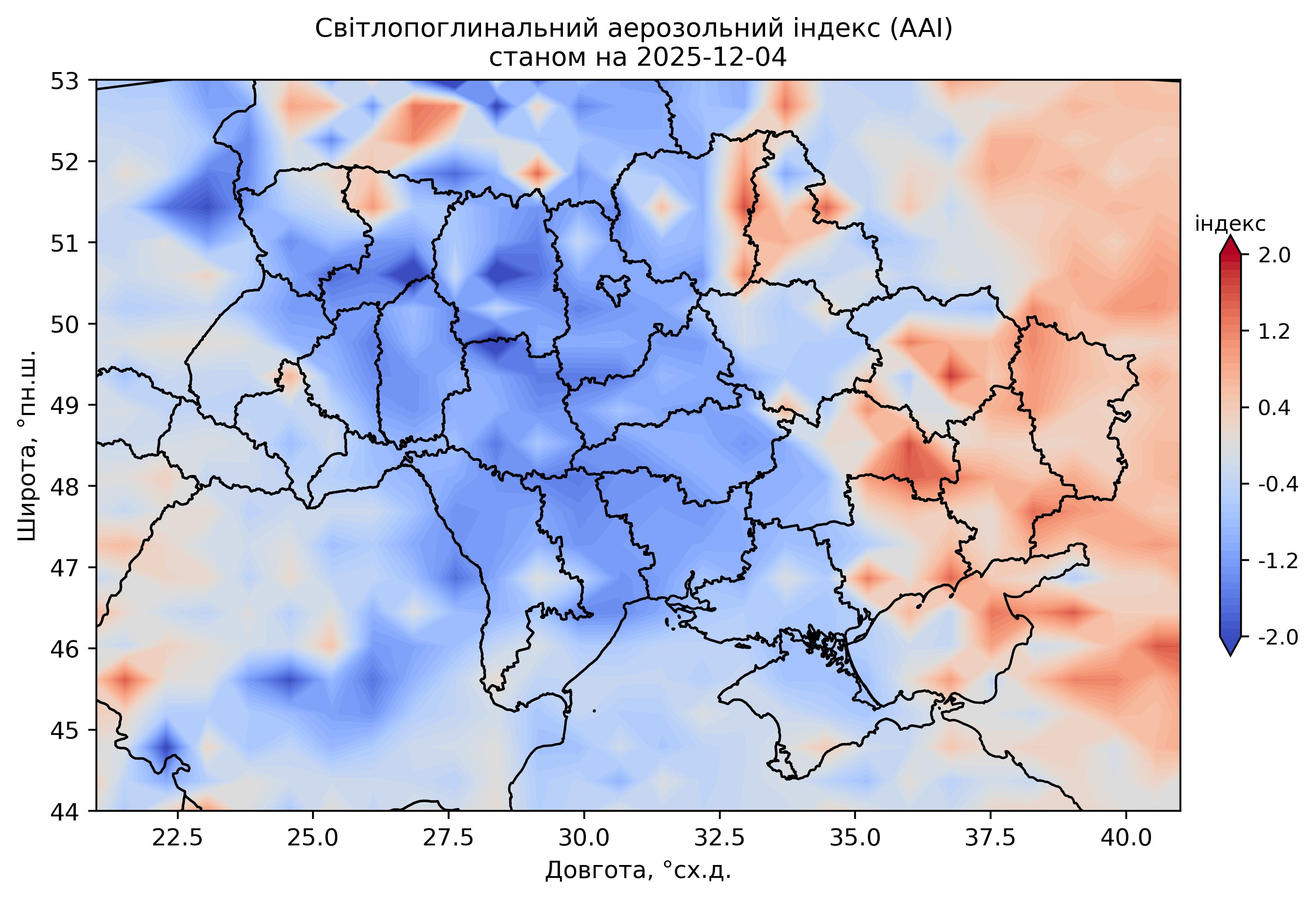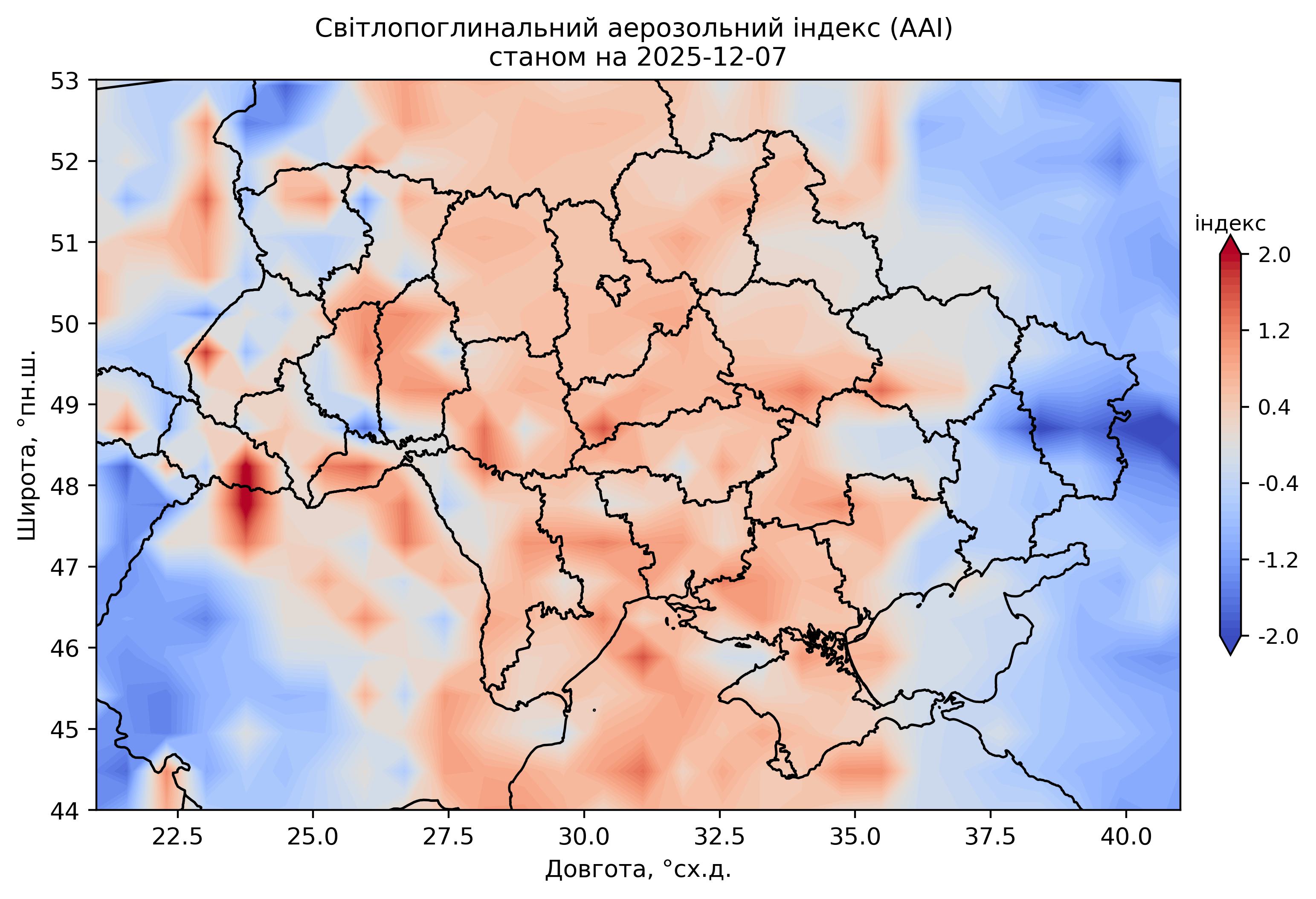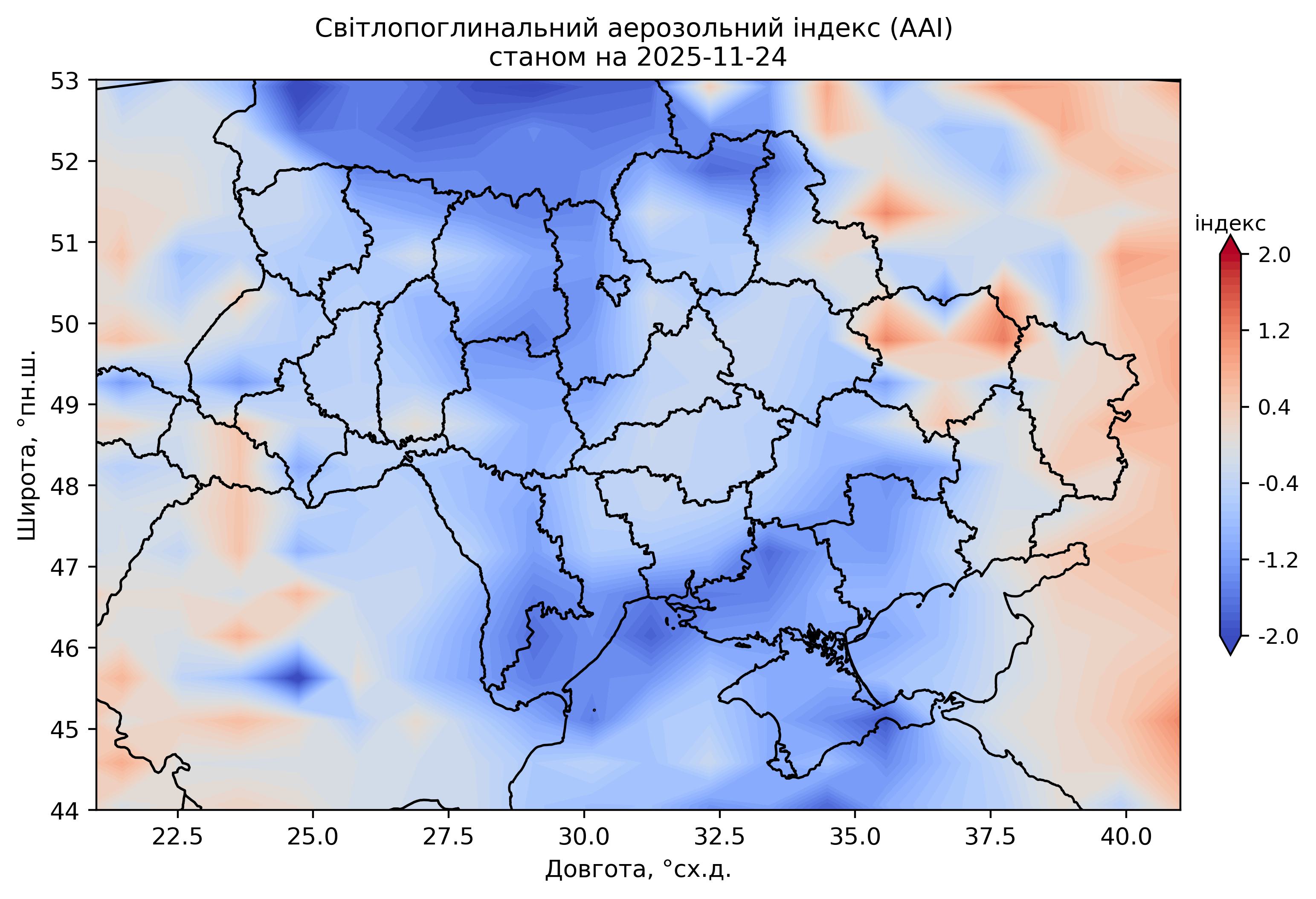 Світлопоглинальний аерозольний індекс (AAI) 2025 р.