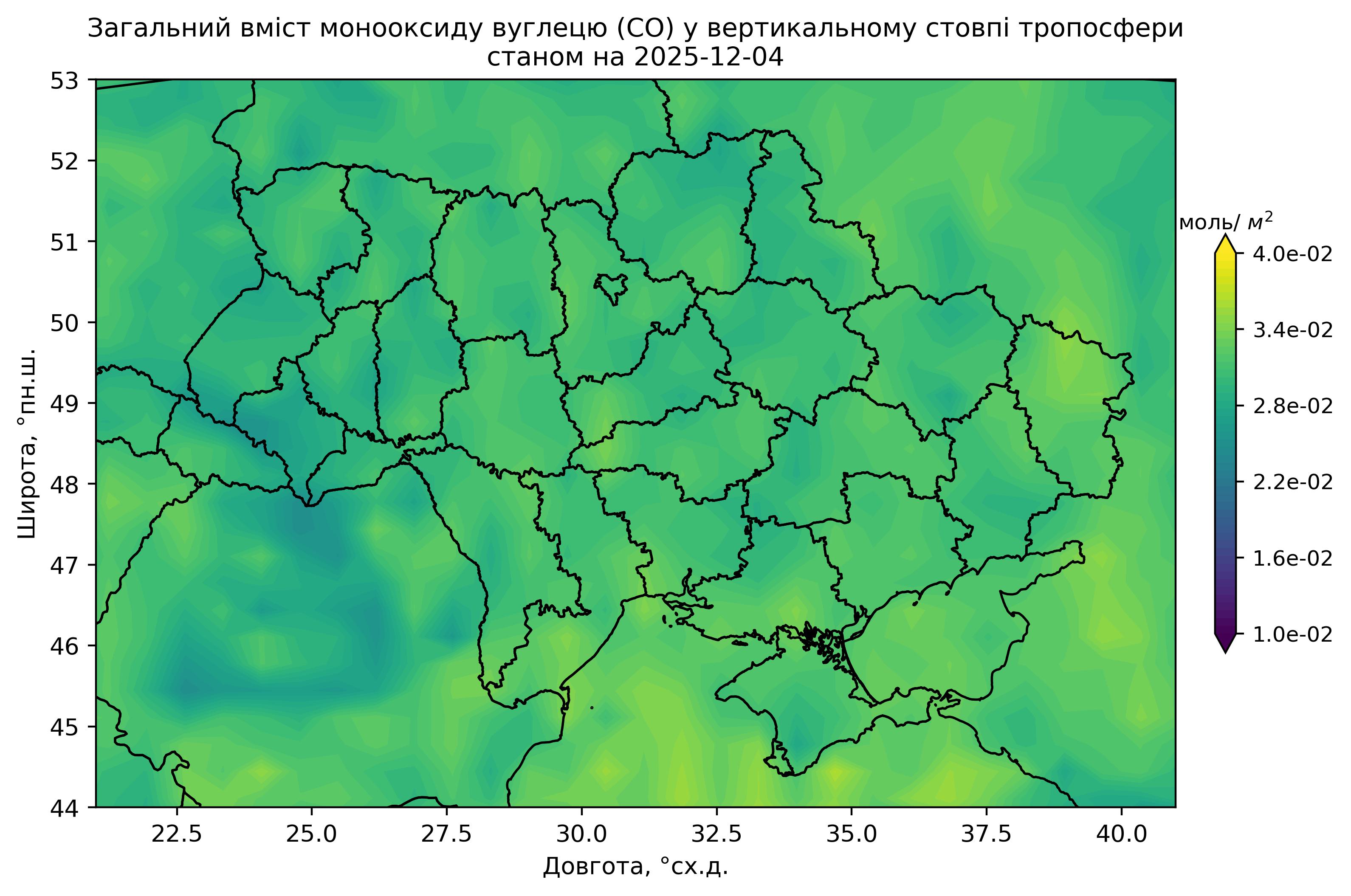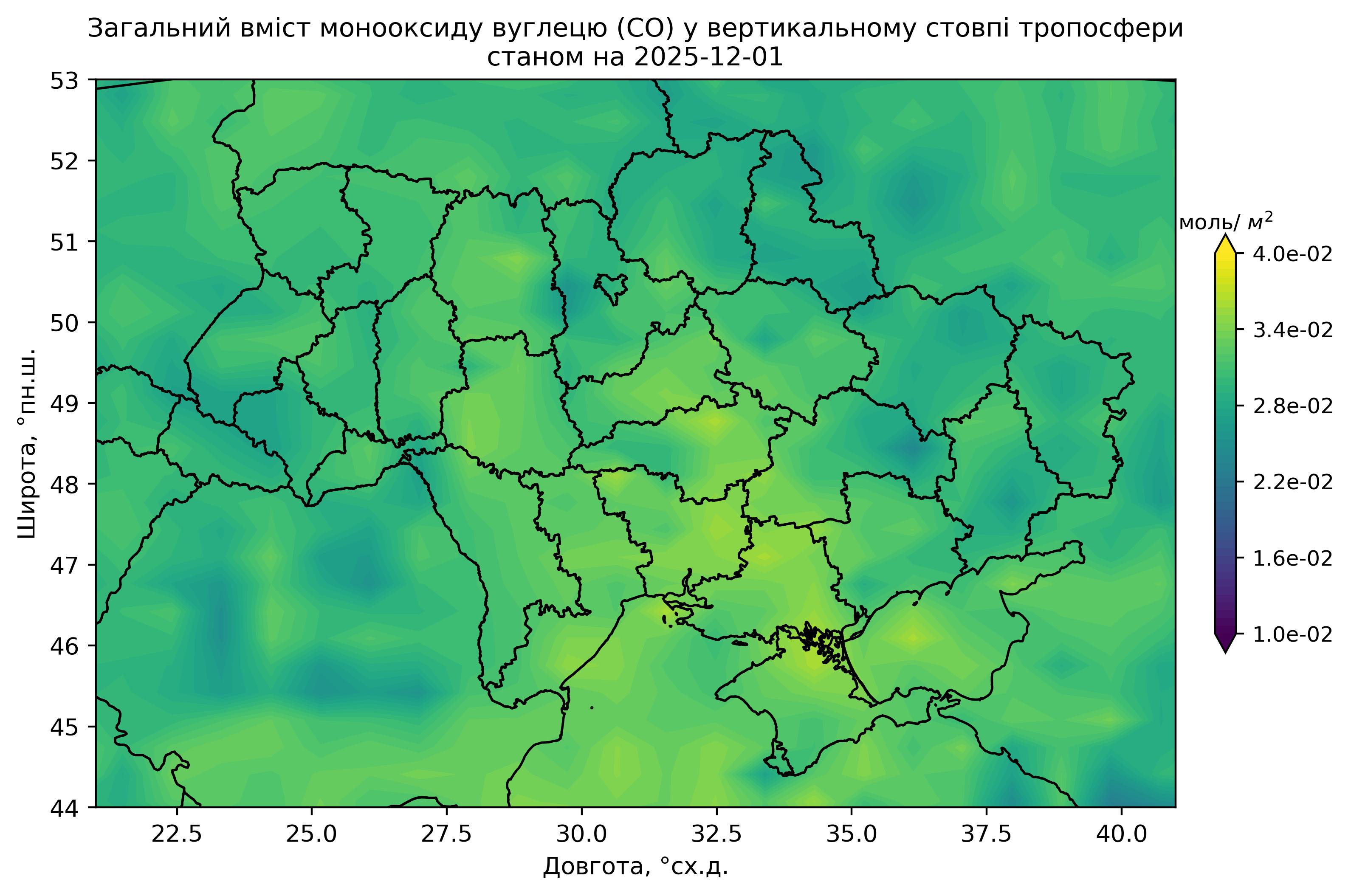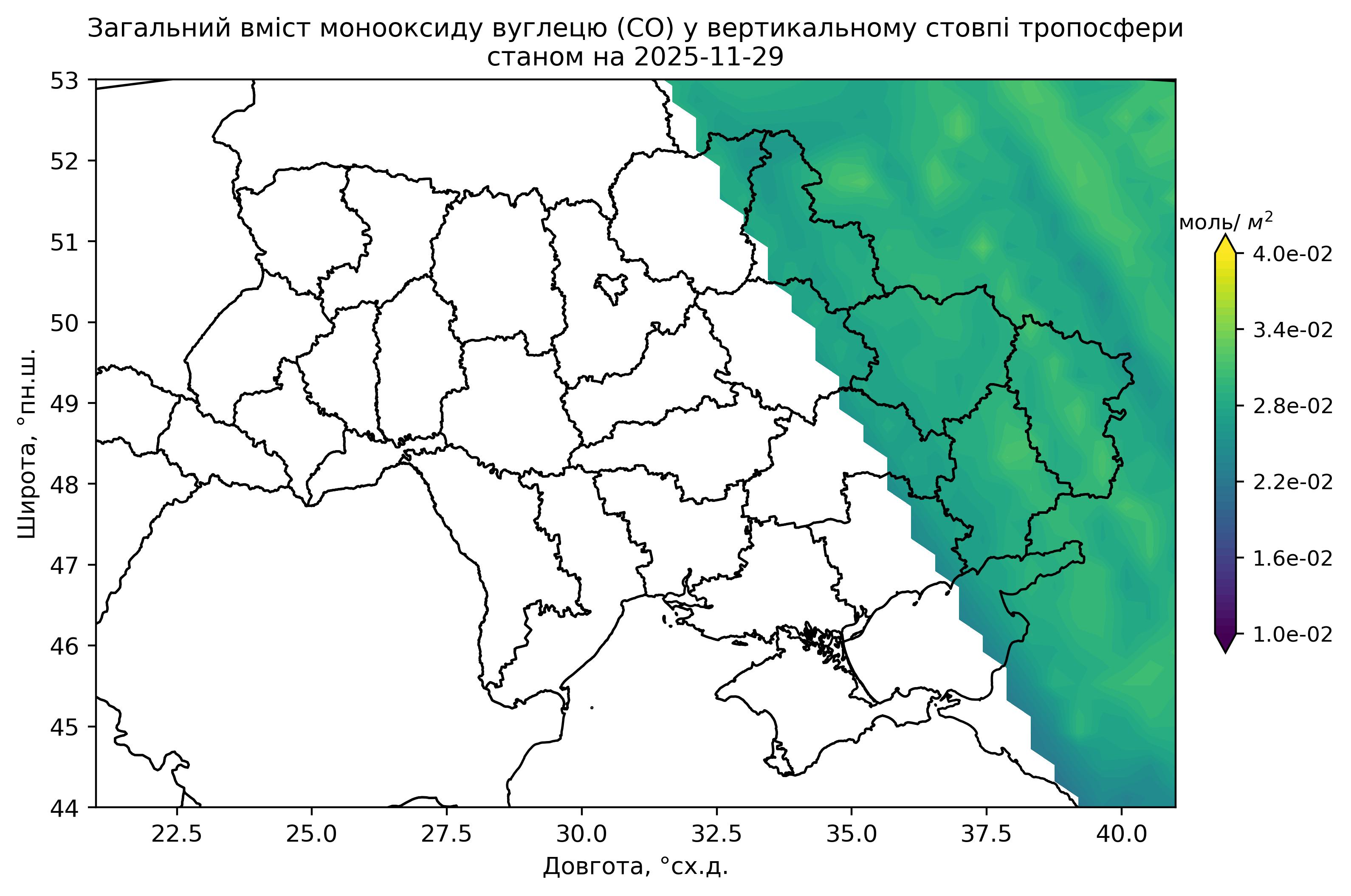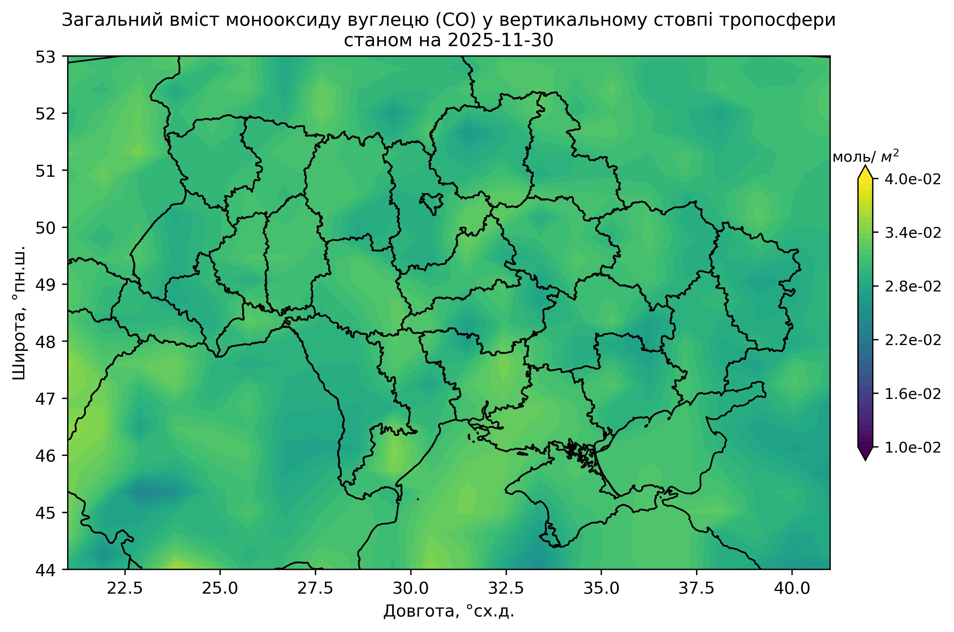 Загальний вміст монооксиду вуглецю (CO) у вертикальному стовпі атмосфери