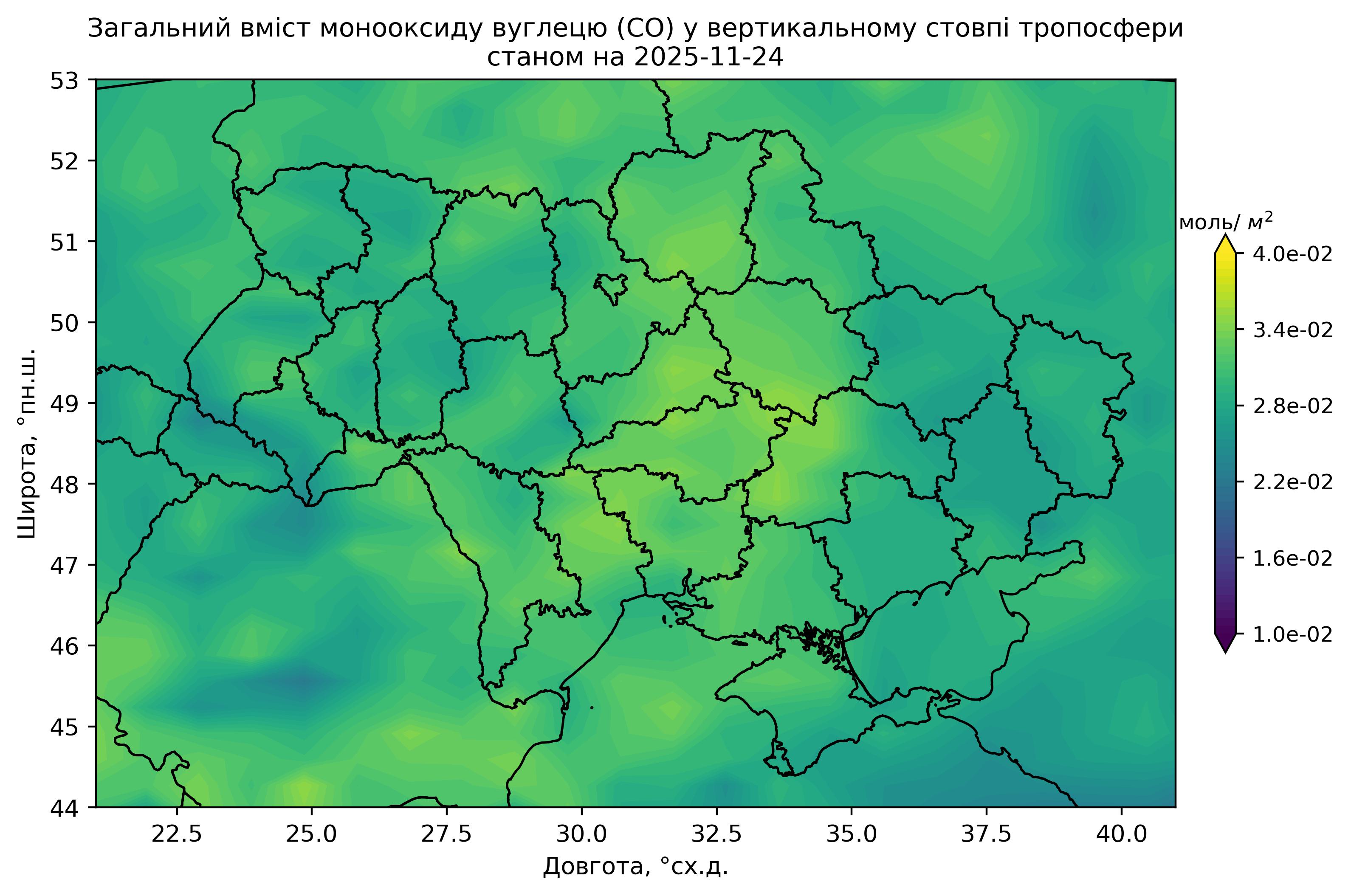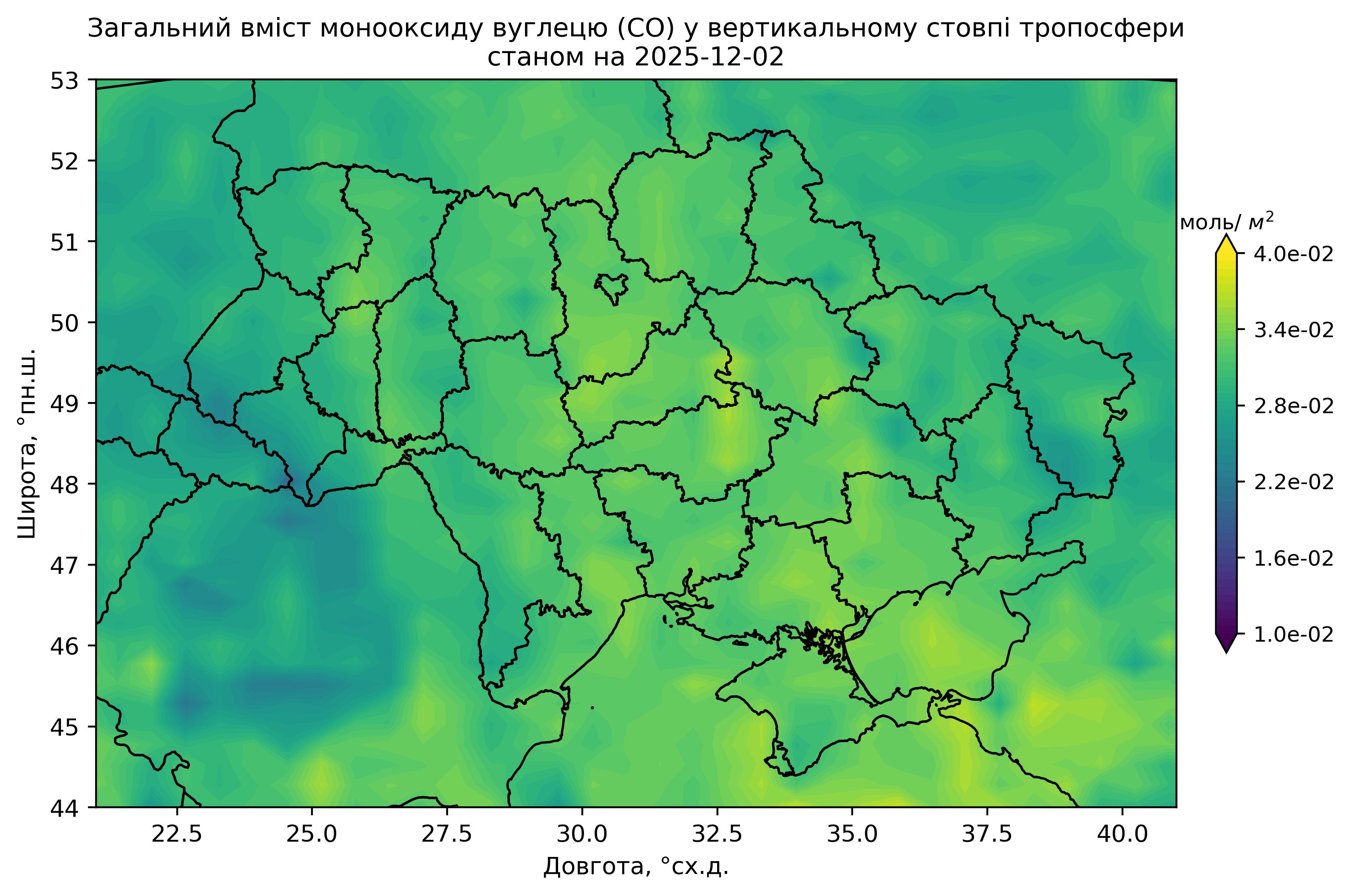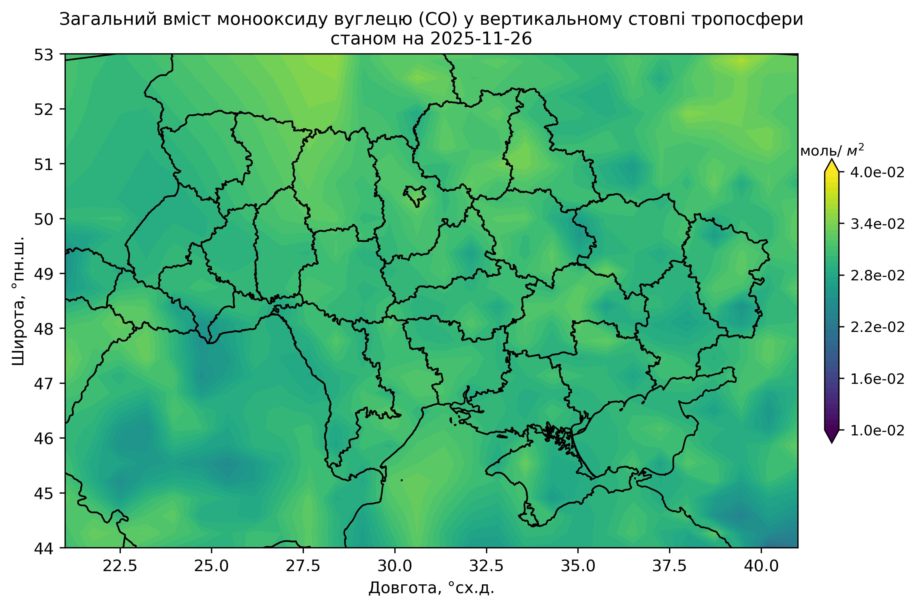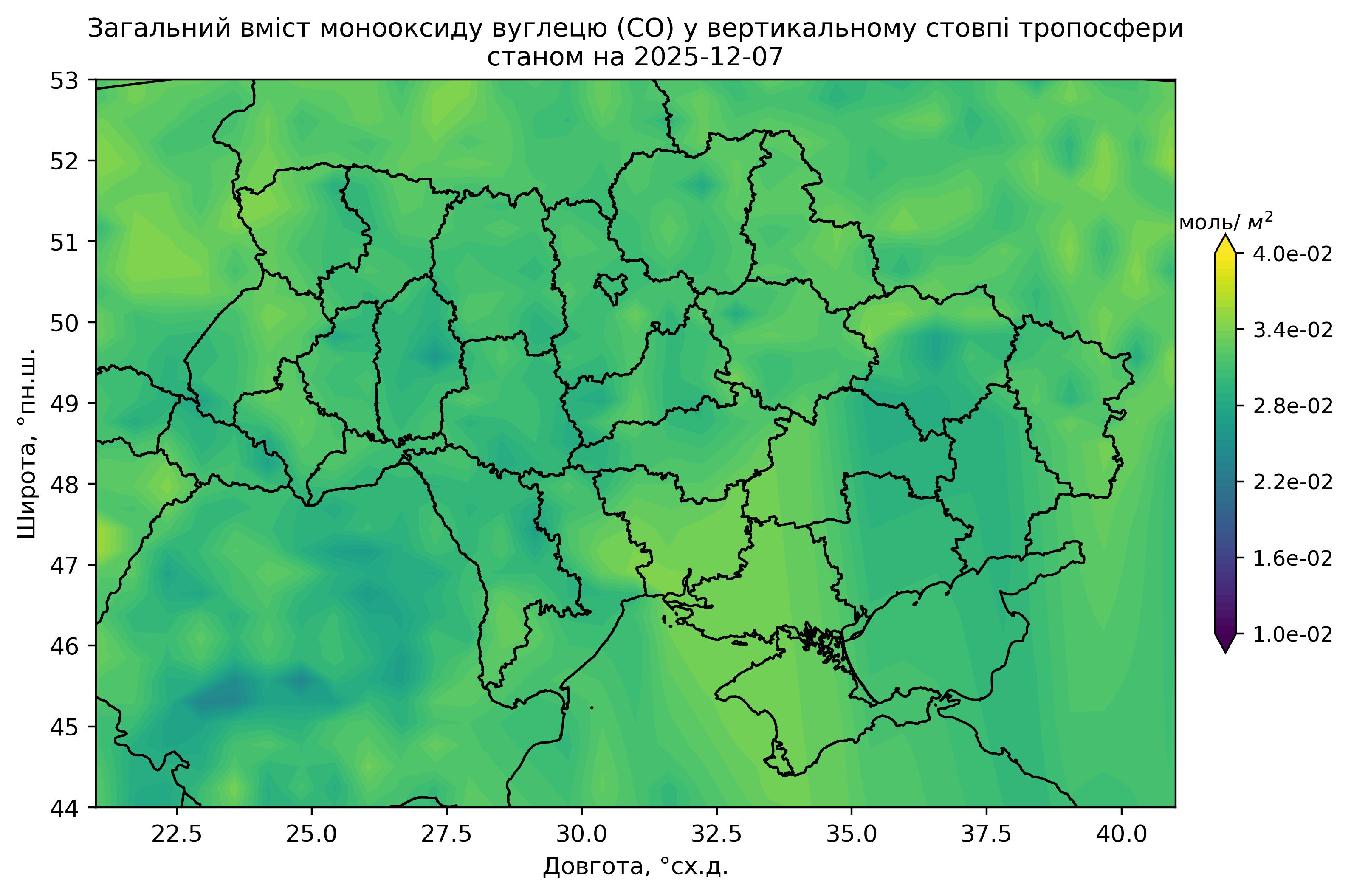 Загальний вміст монооксиду вуглецю (CO) у вертикальному стовпі атмосфери
