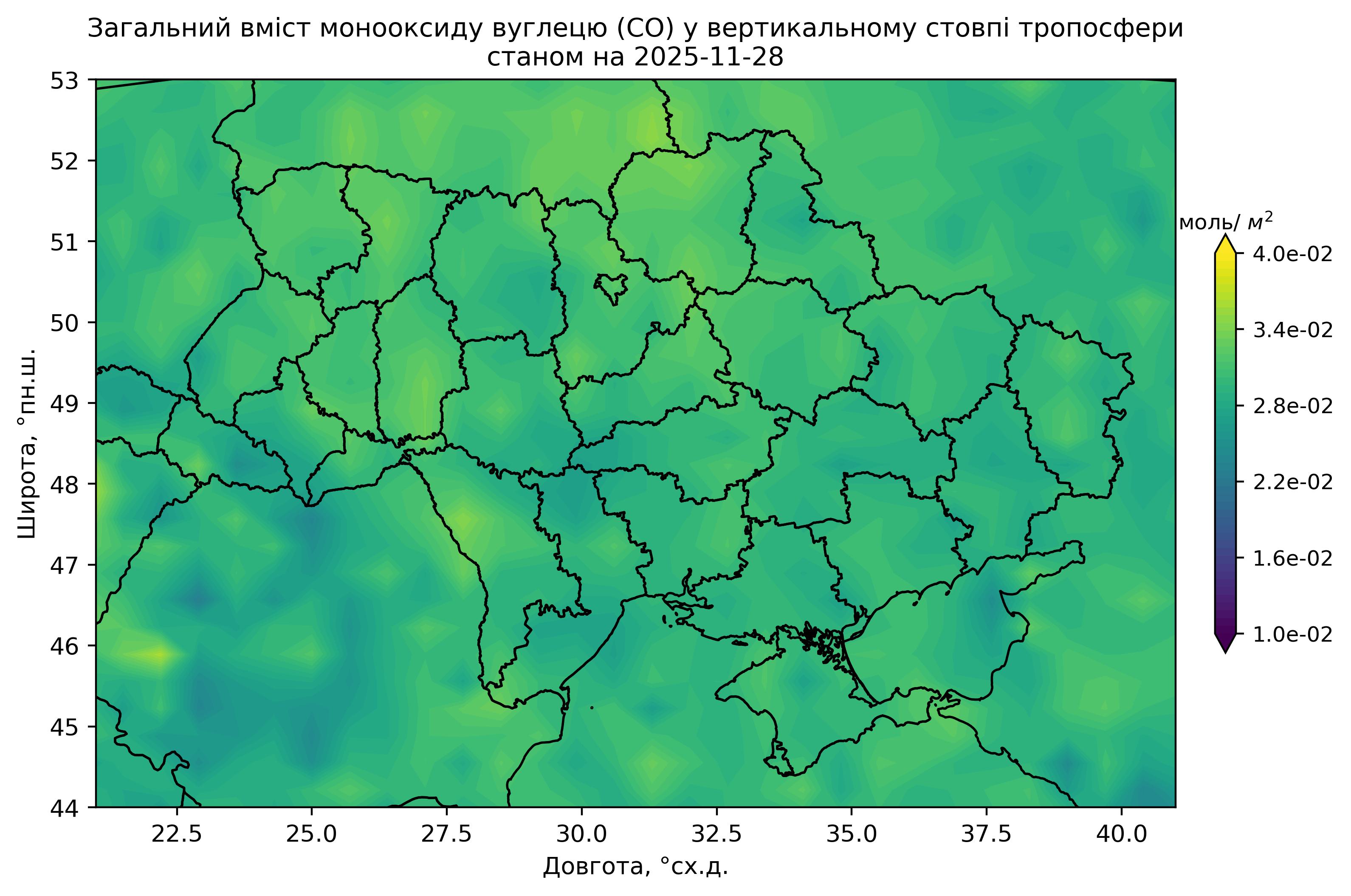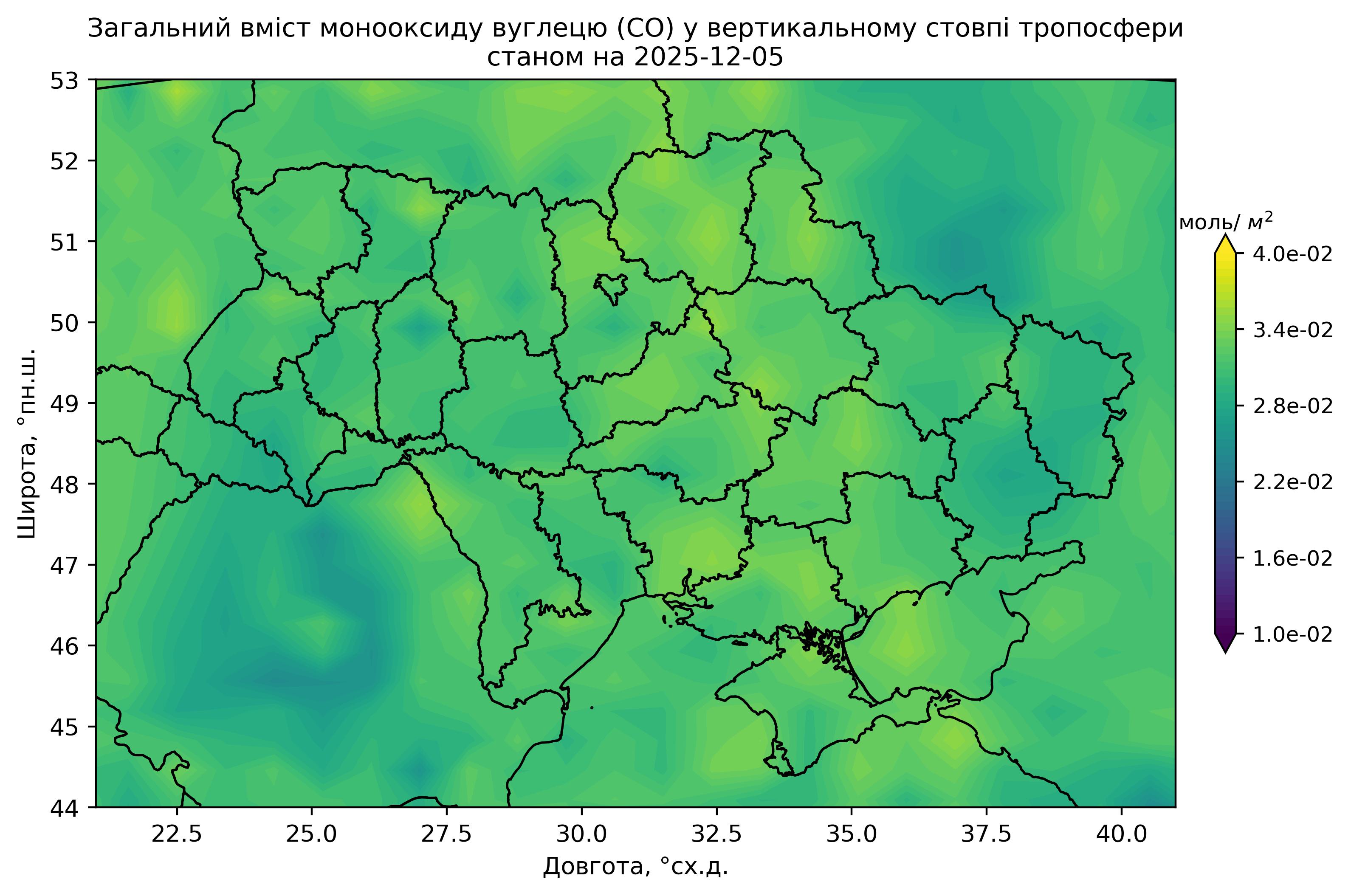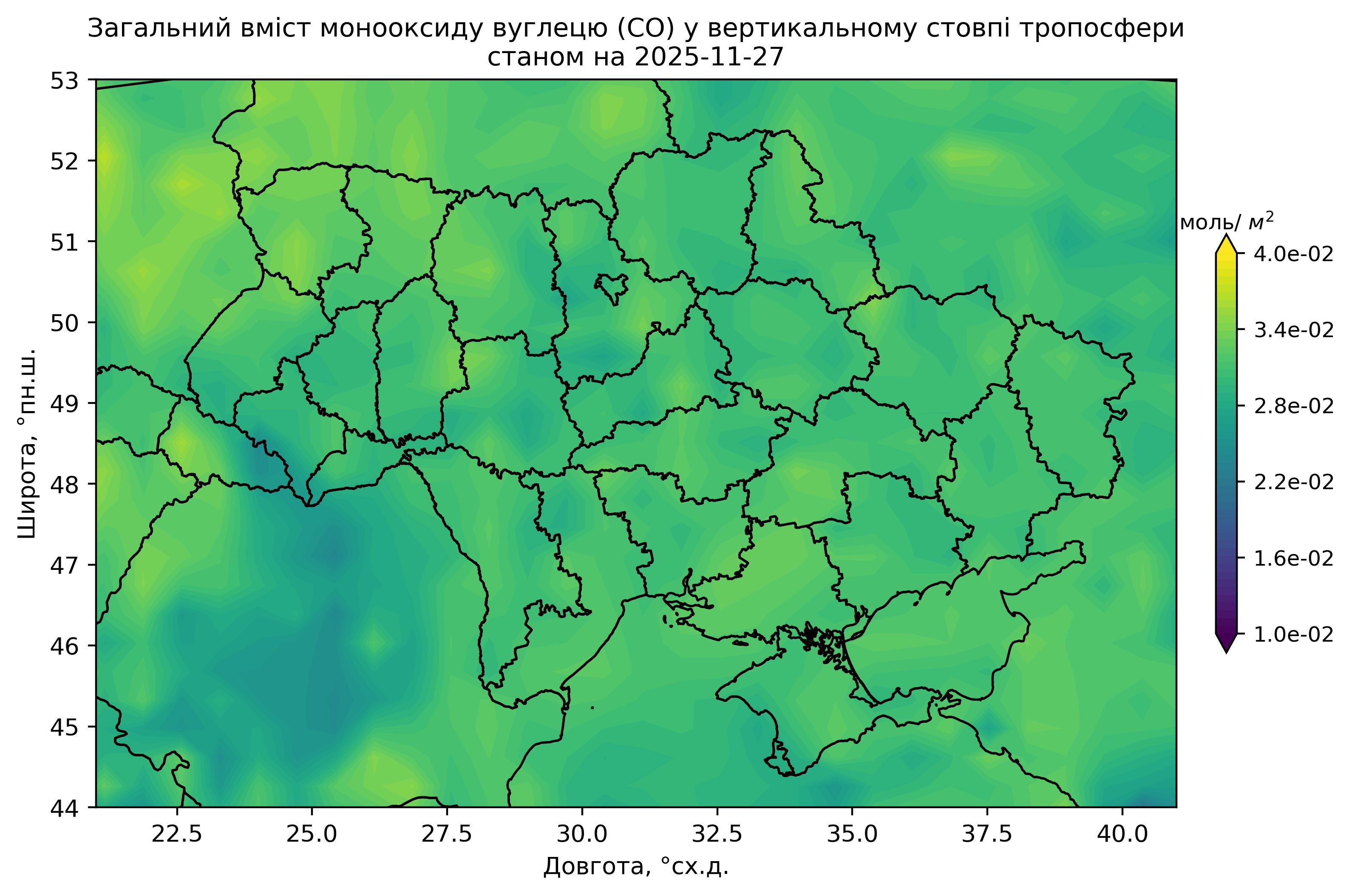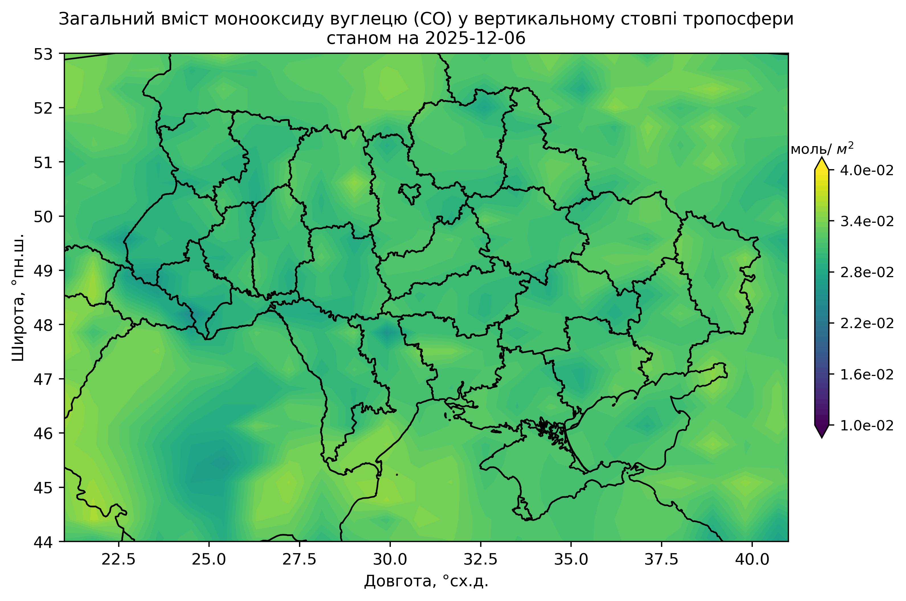 Загальний вміст монооксиду вуглецю (CO) у вертикальному стовпі атмосфери