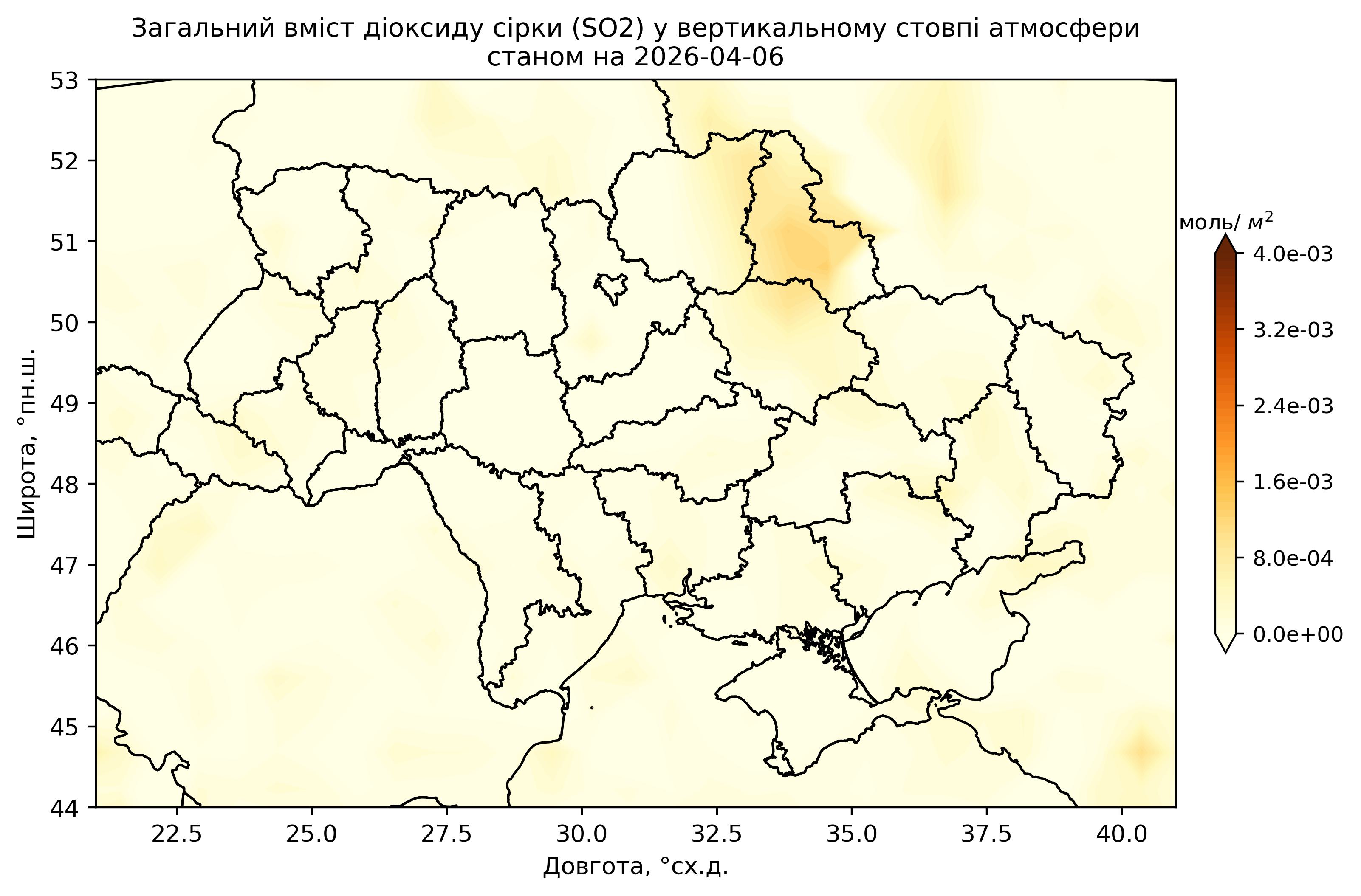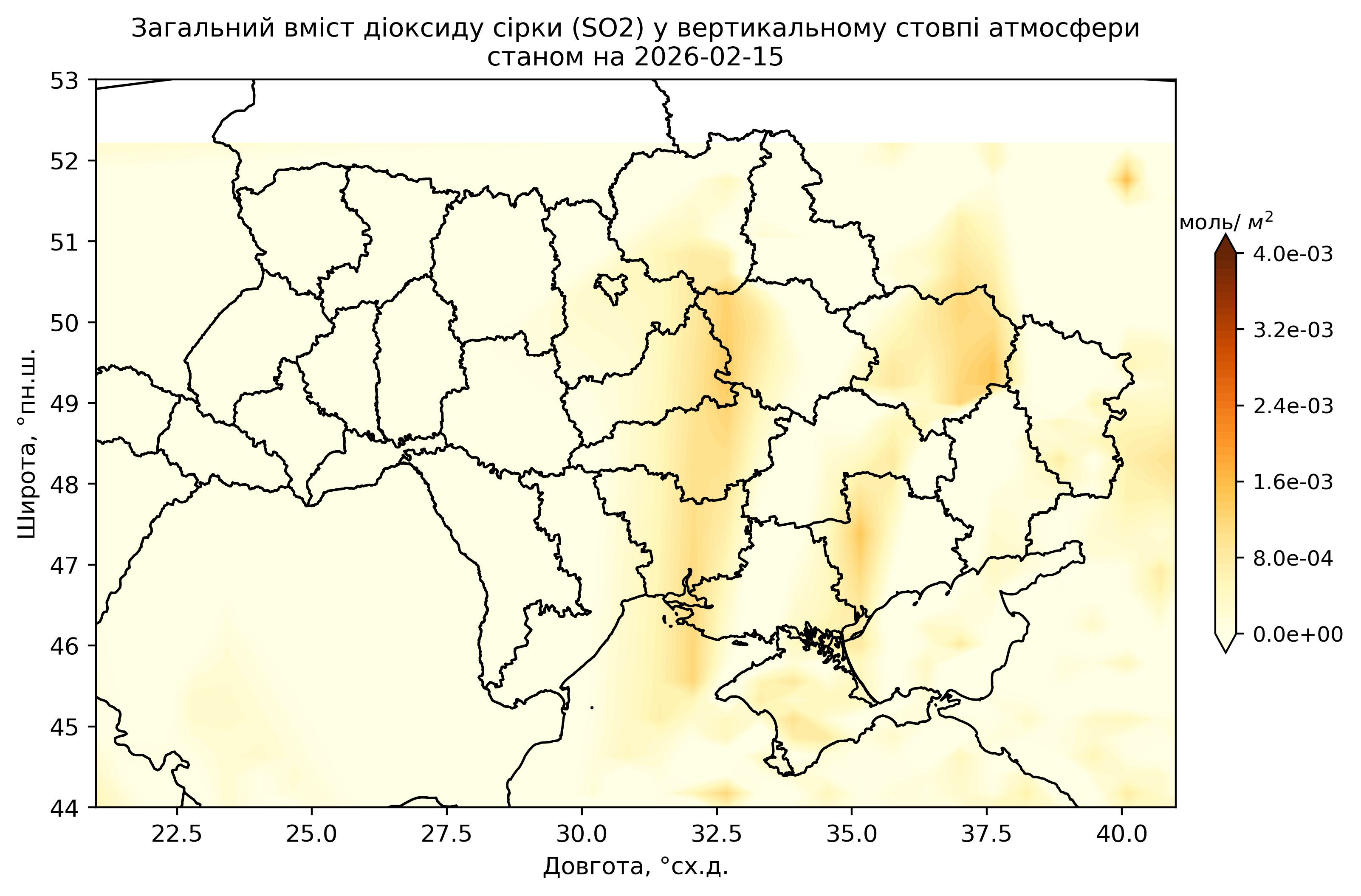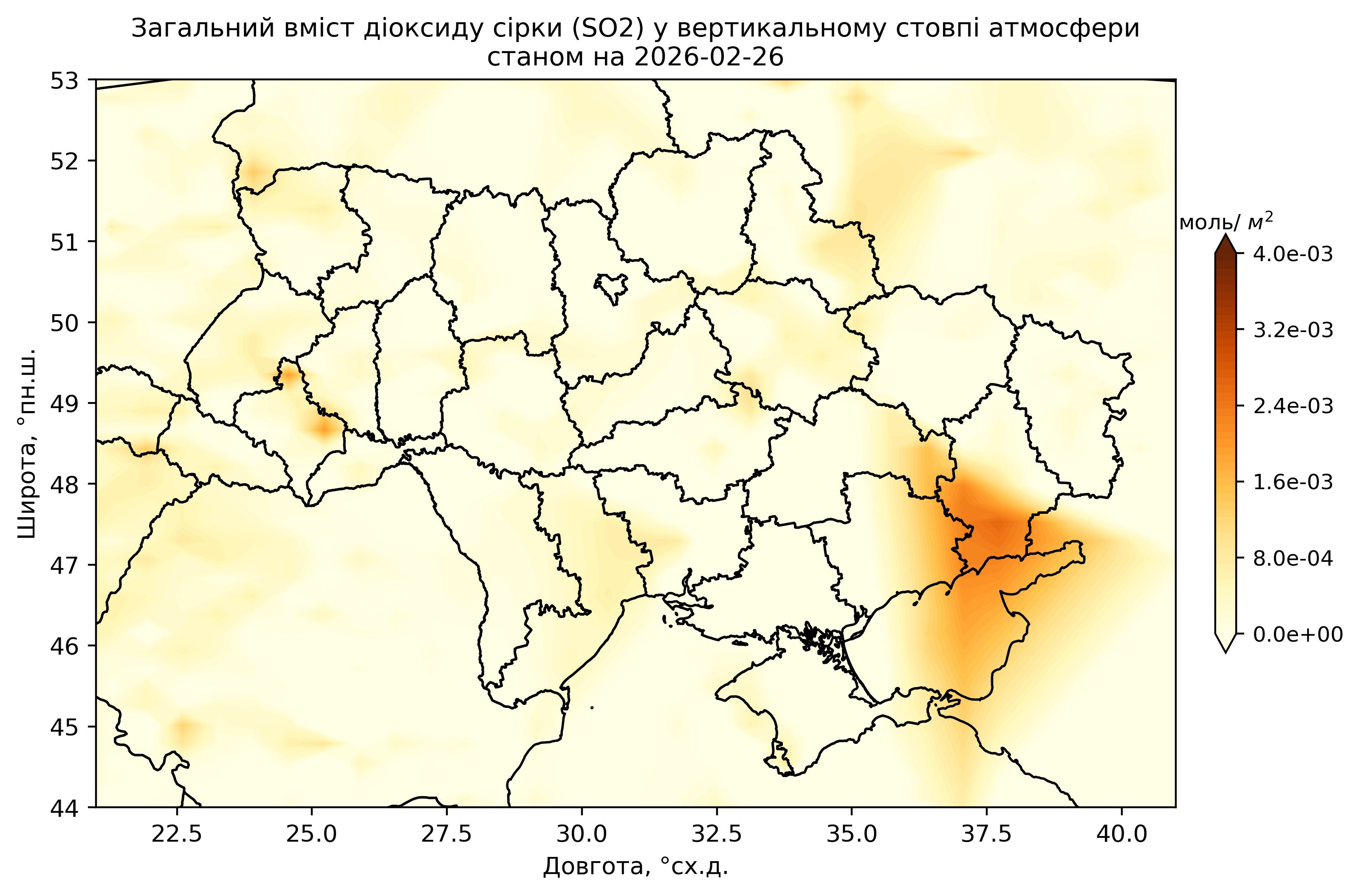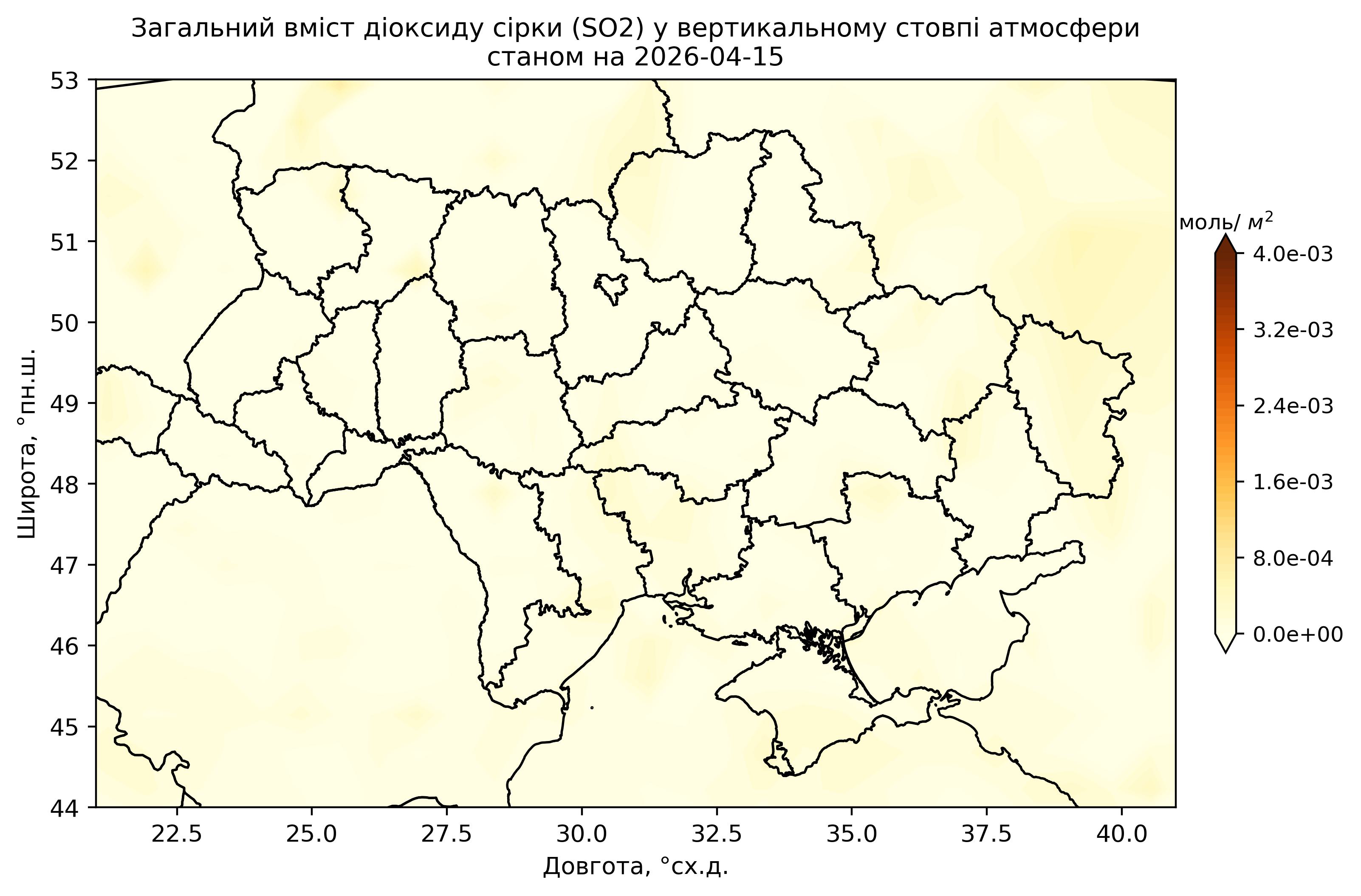 Загальний вміст діоксиду сірки (SO2) у вертикальному стовпі атмосфери