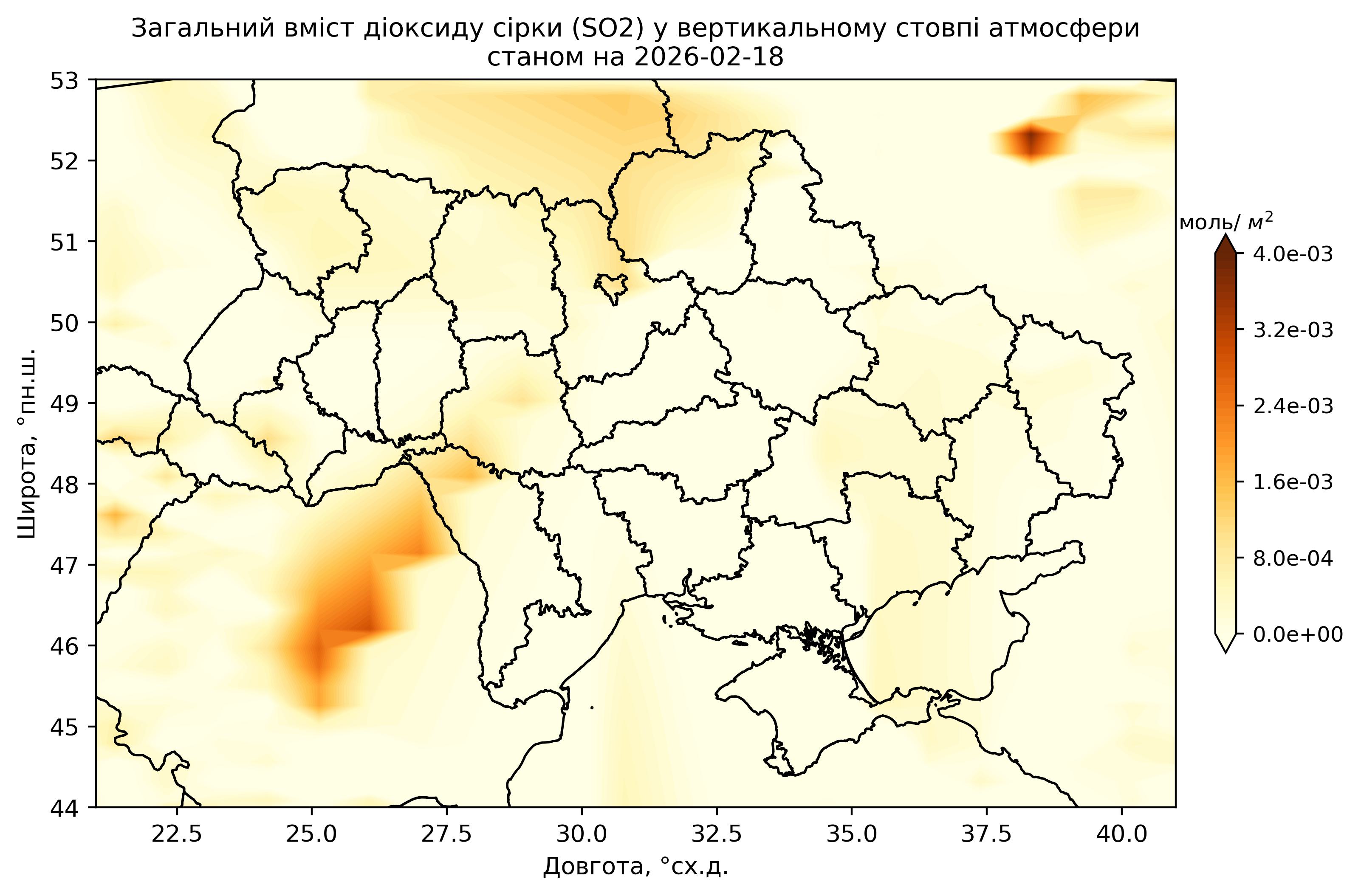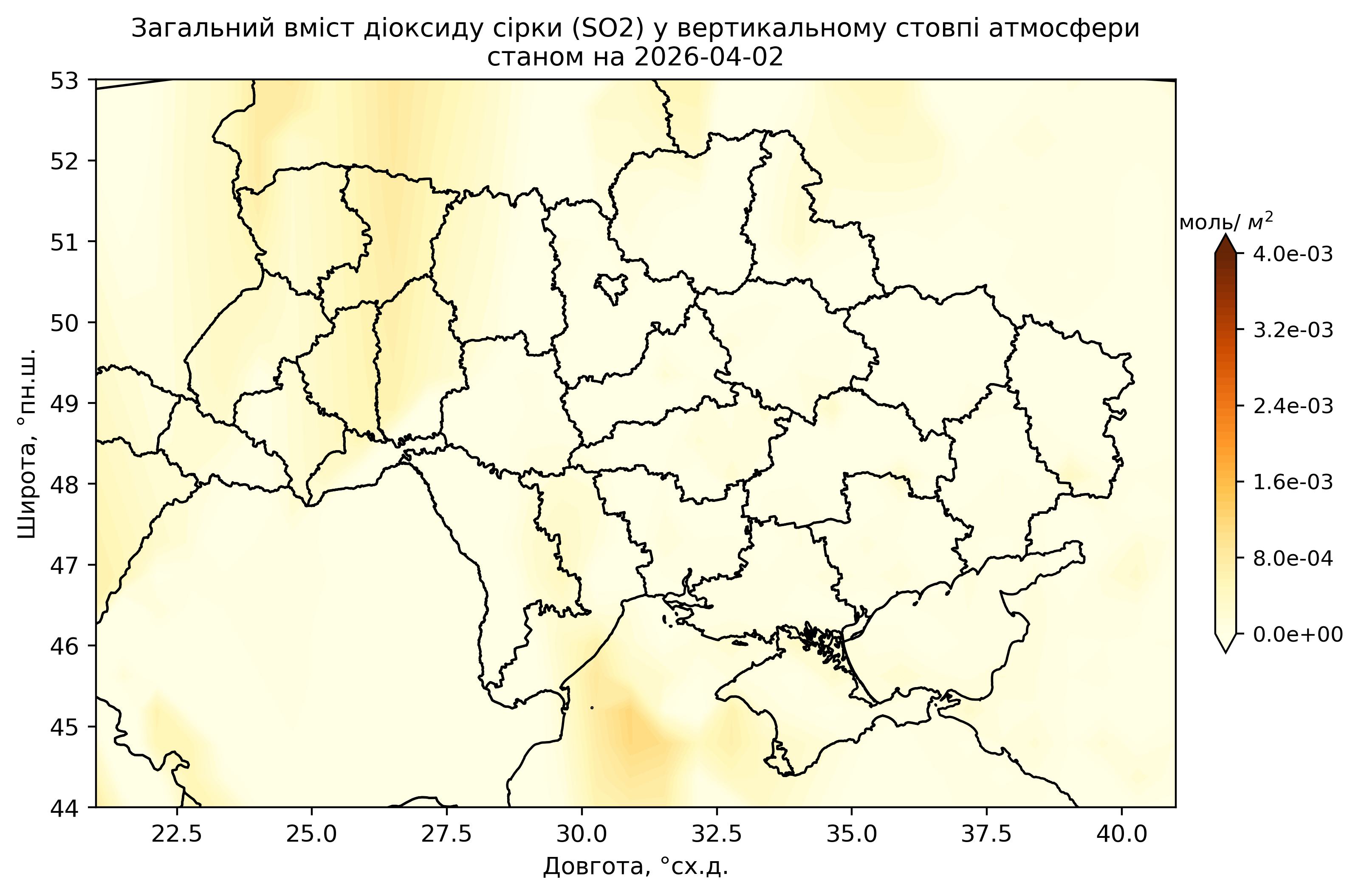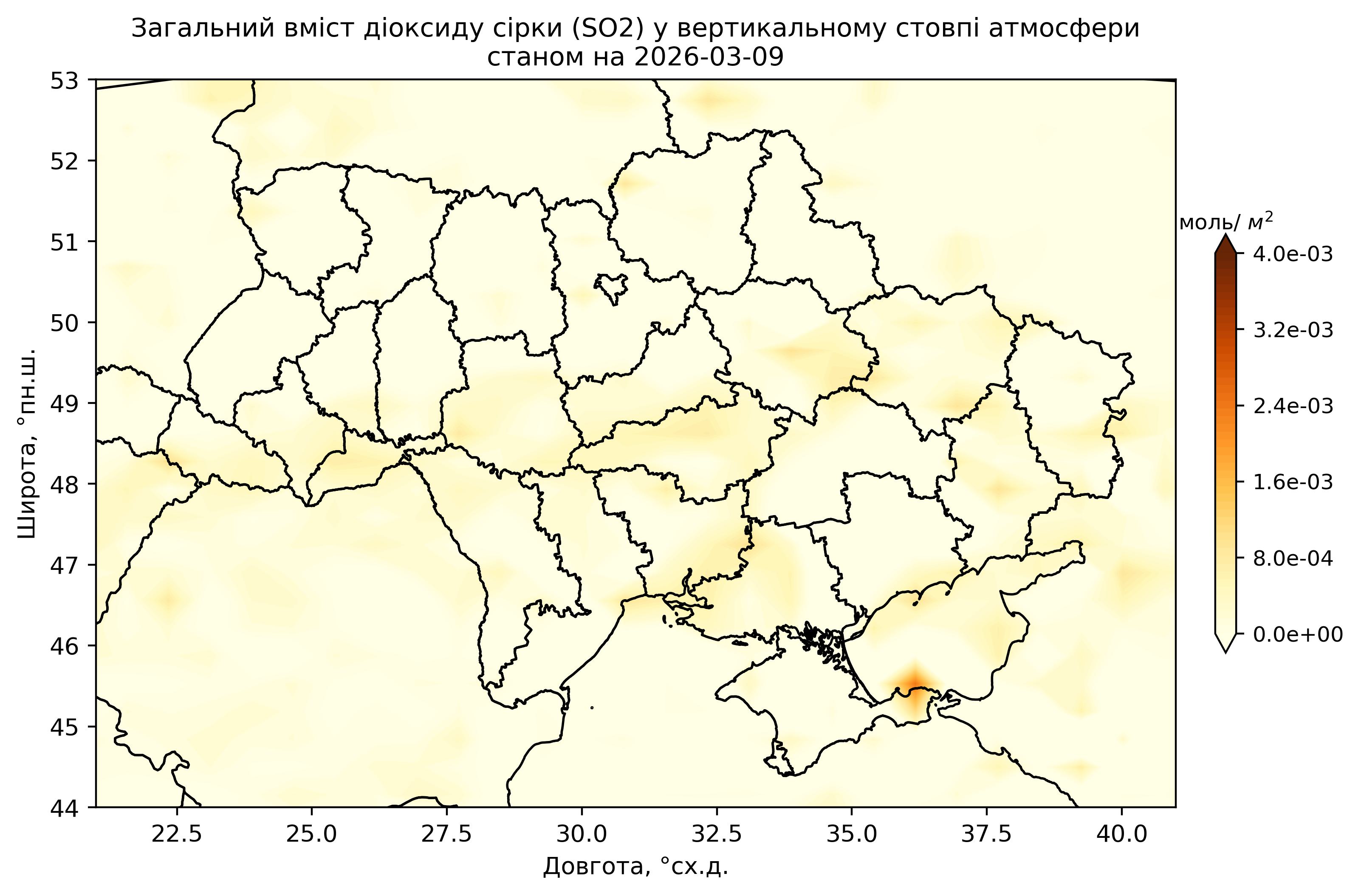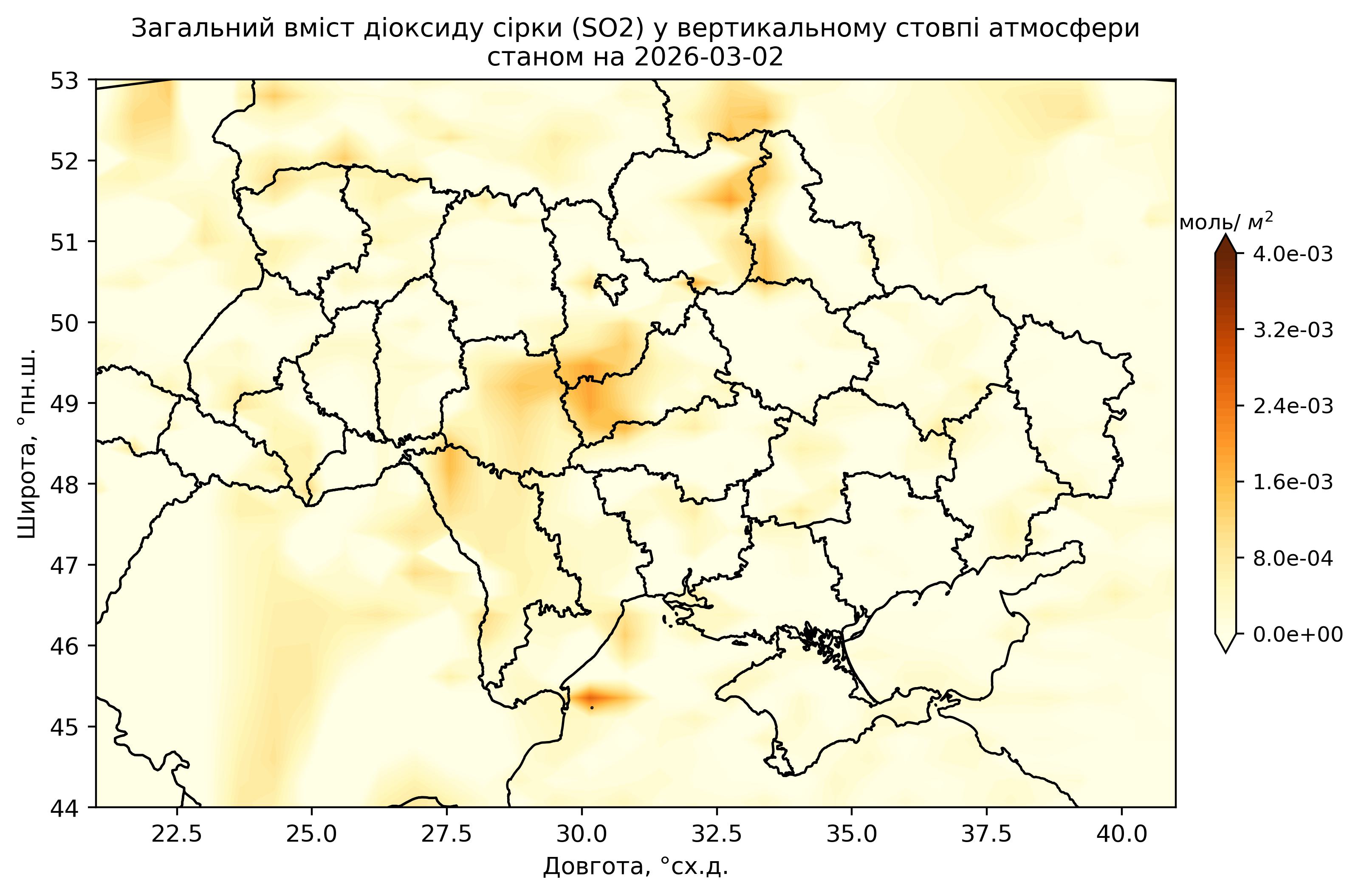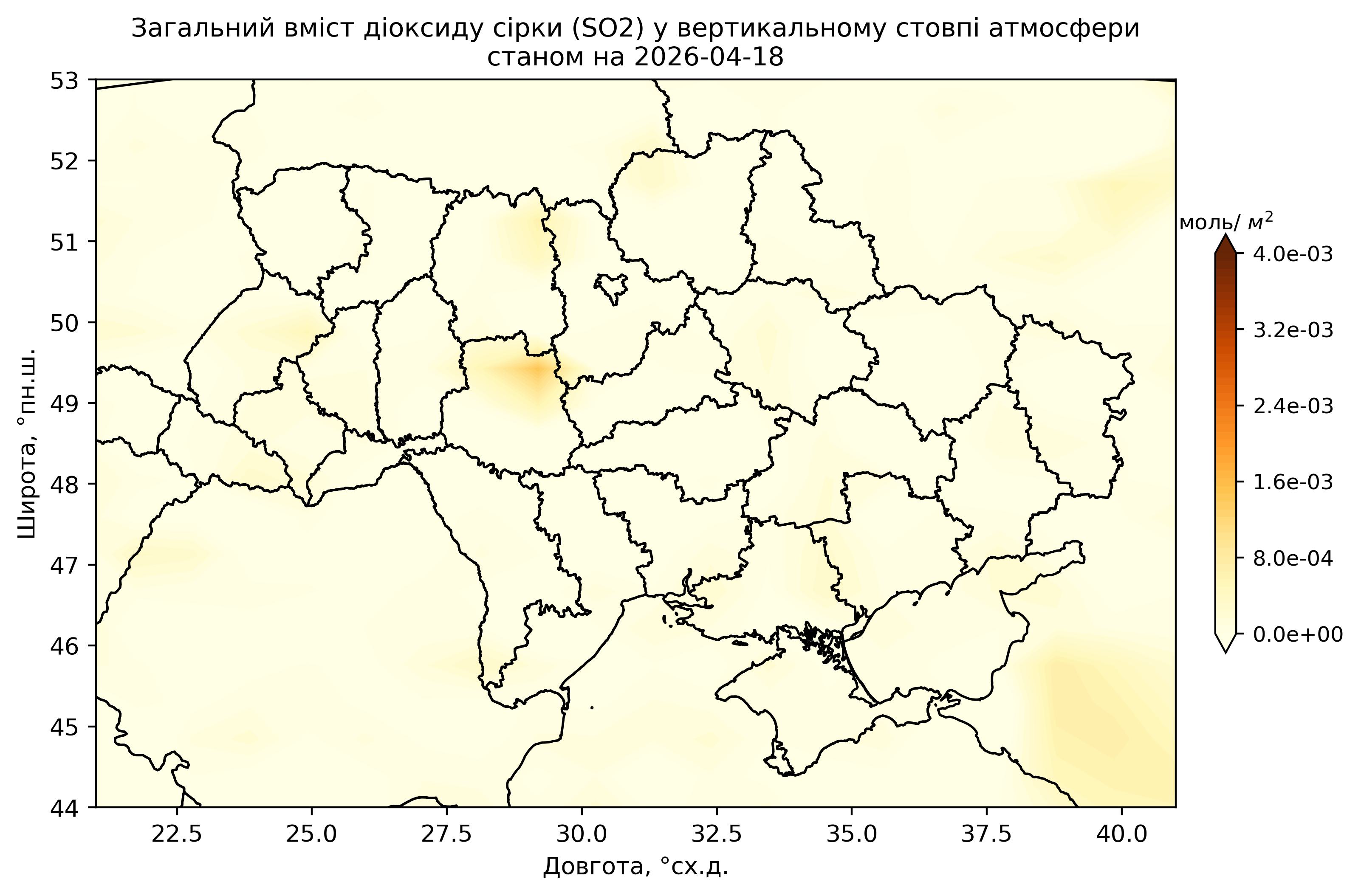 Загальний вміст діоксиду сірки (SO2) у вертикальному стовпі атмосфери