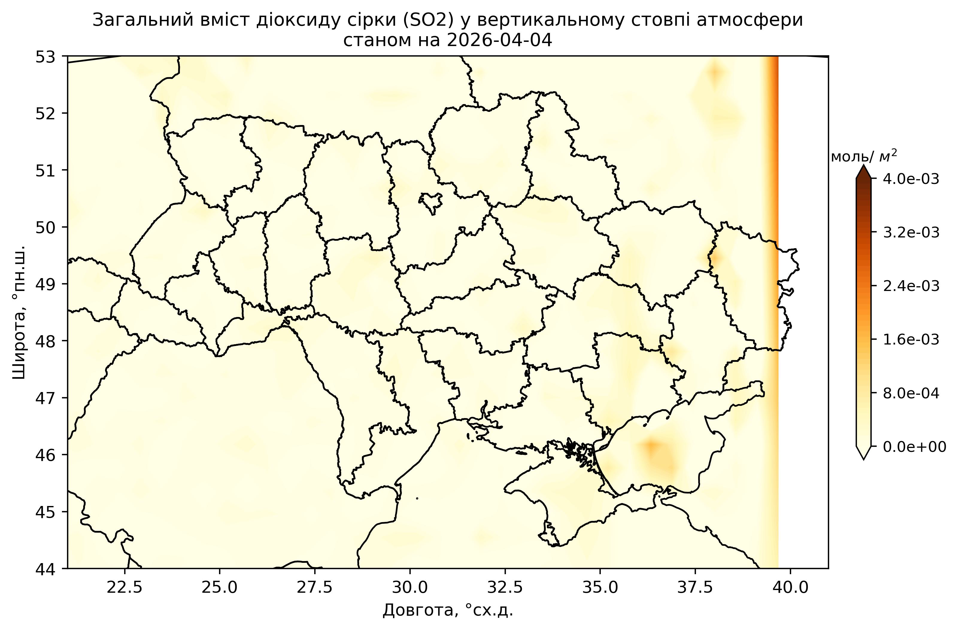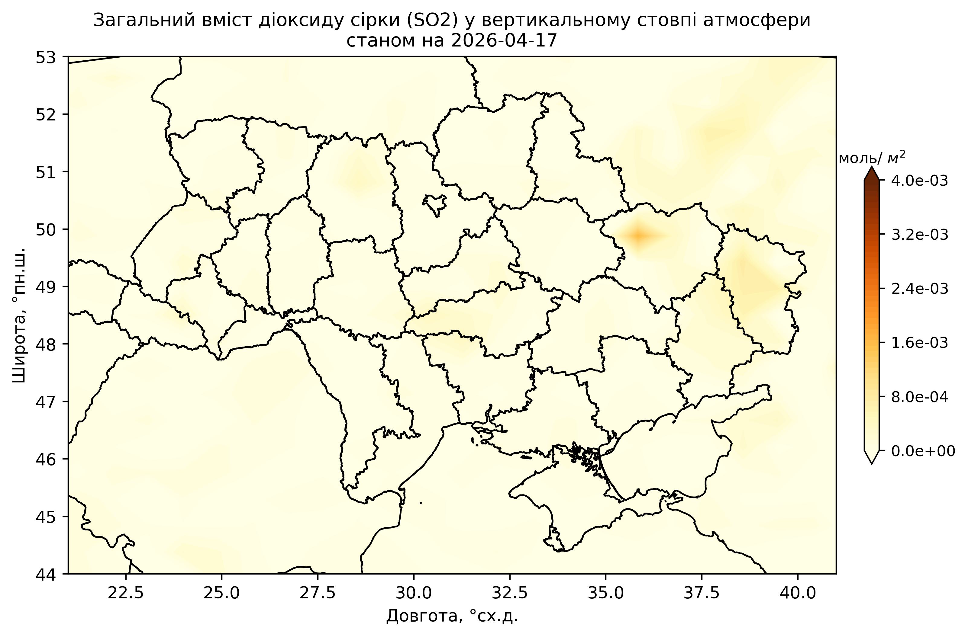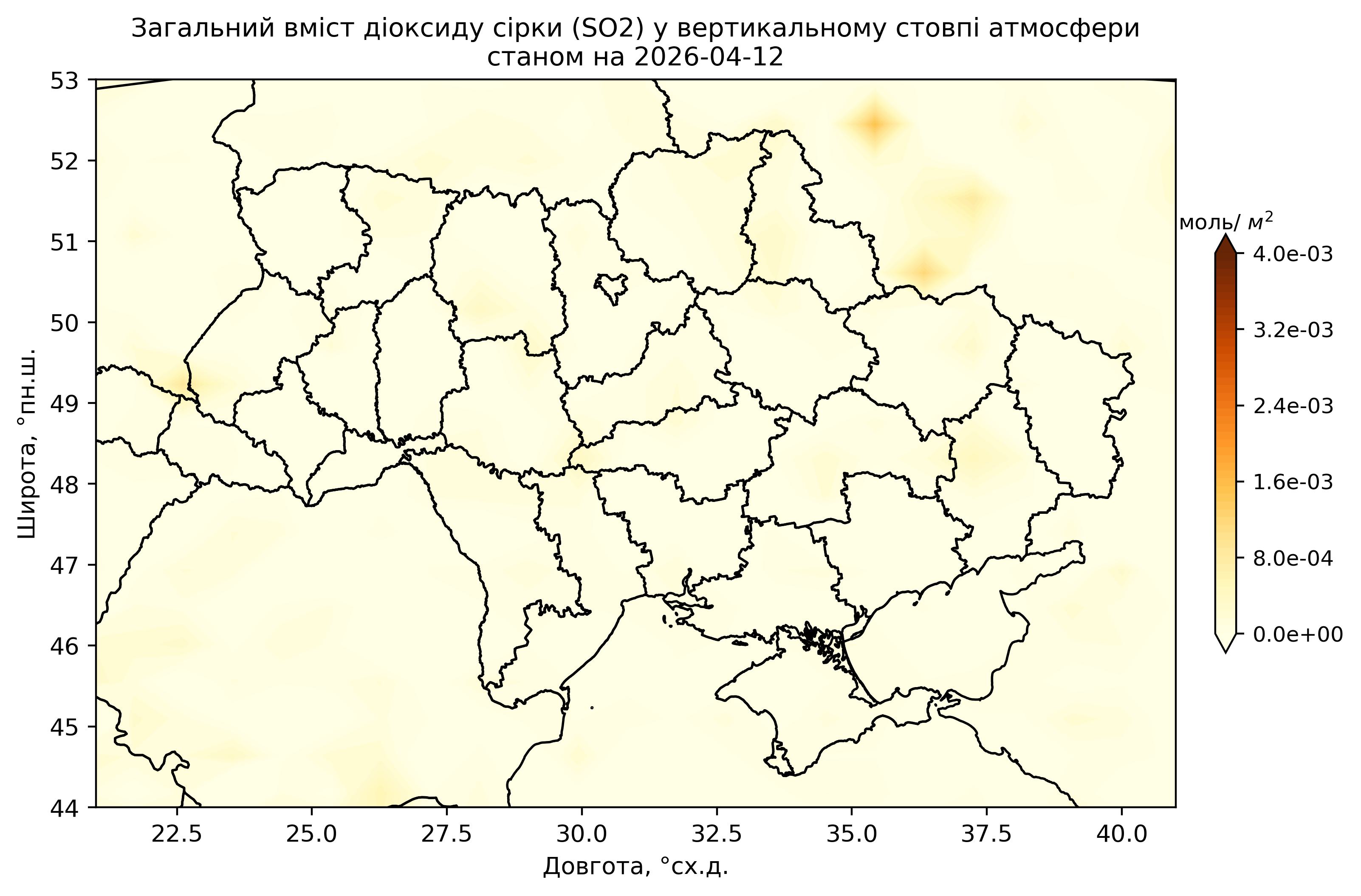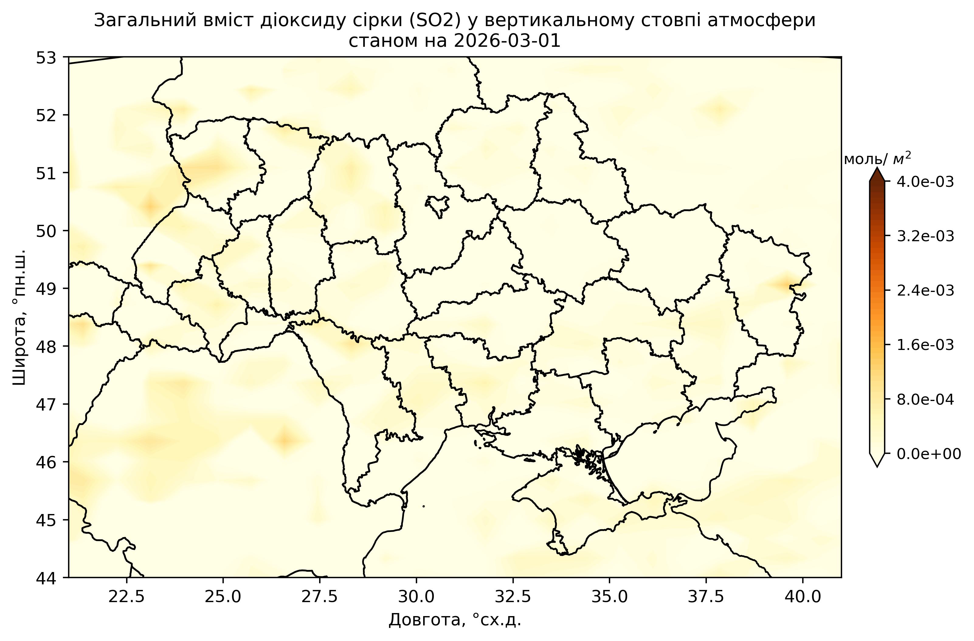 Загальний вміст діоксиду сірки (SO2) у вертикальному стовпі атмосфери