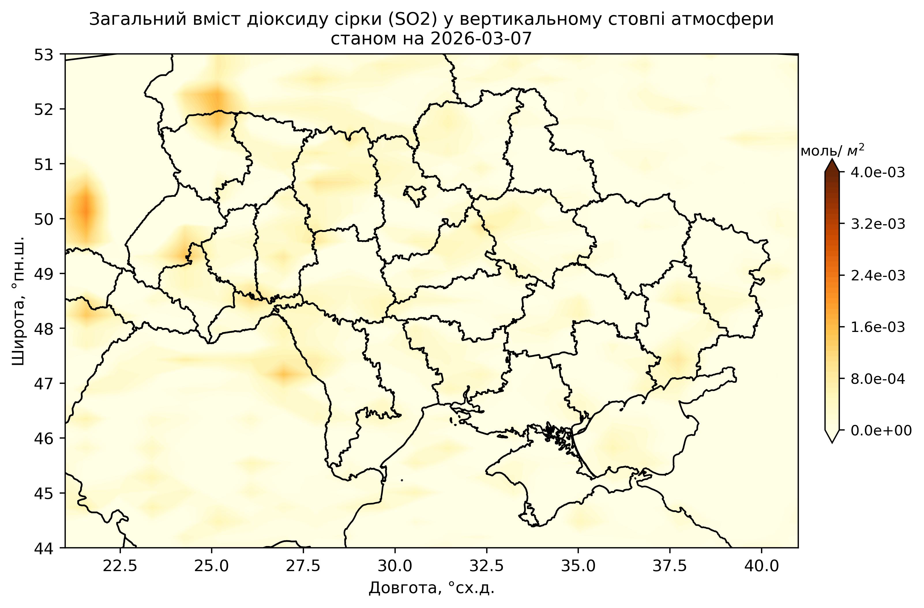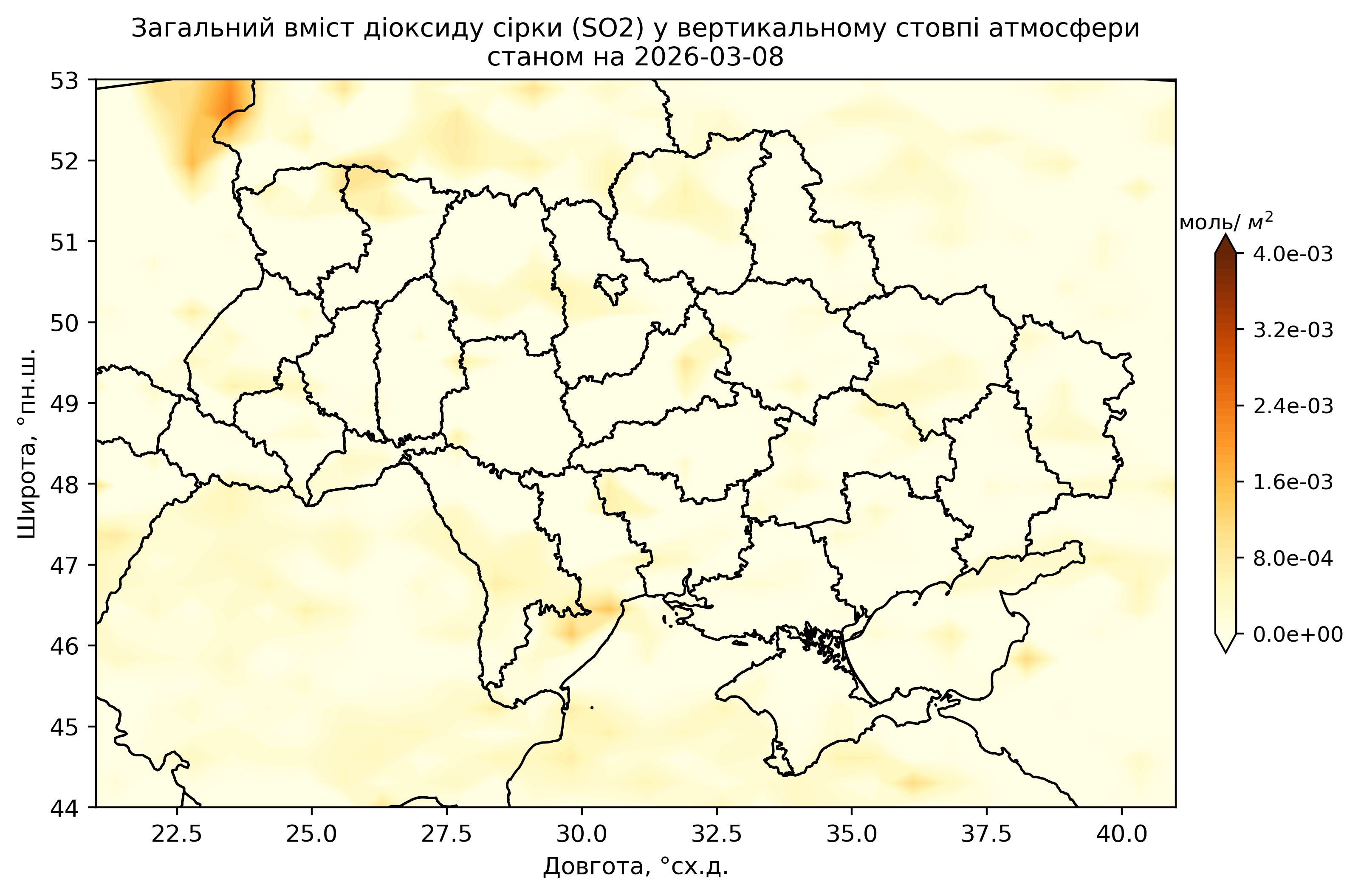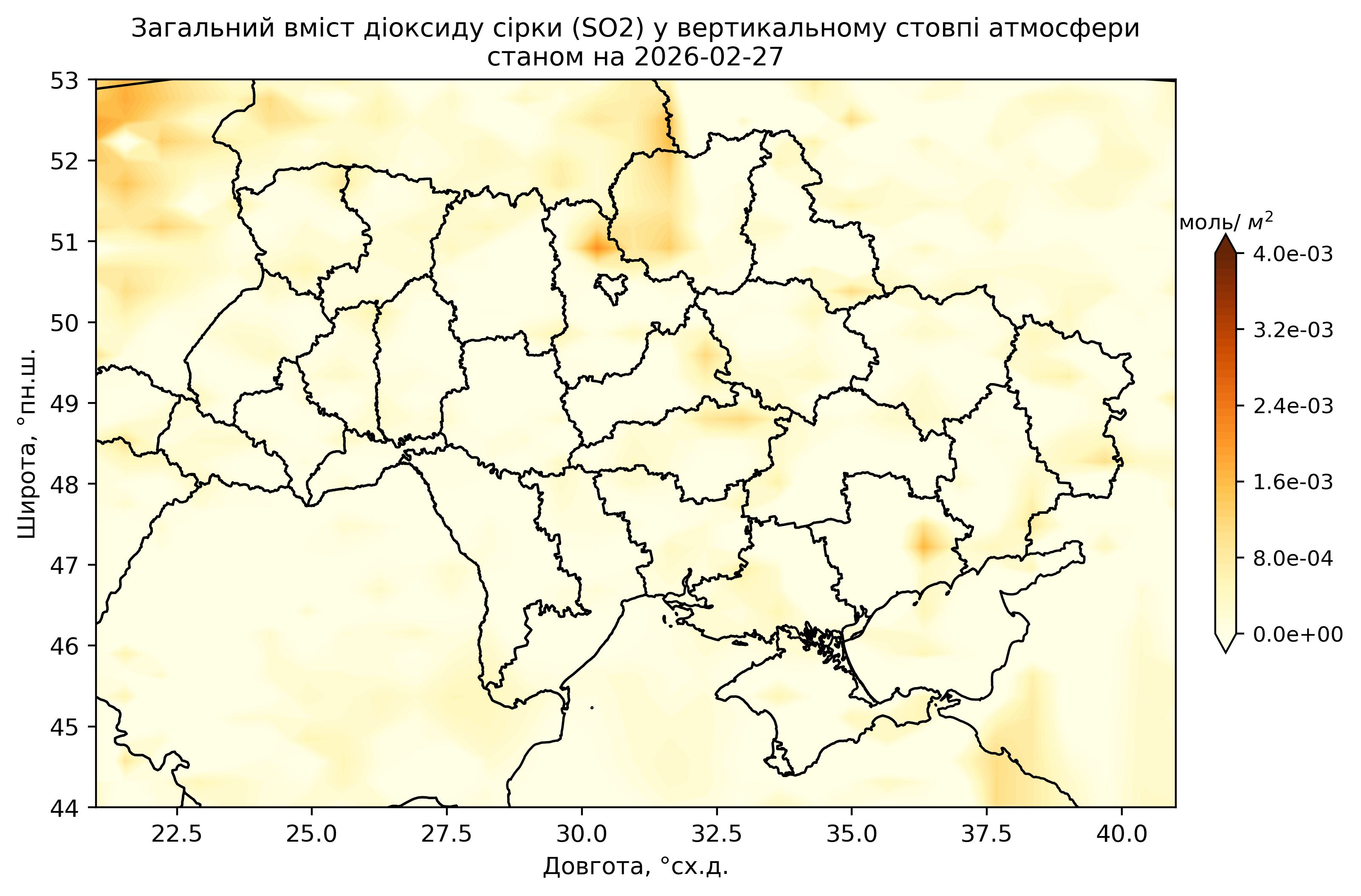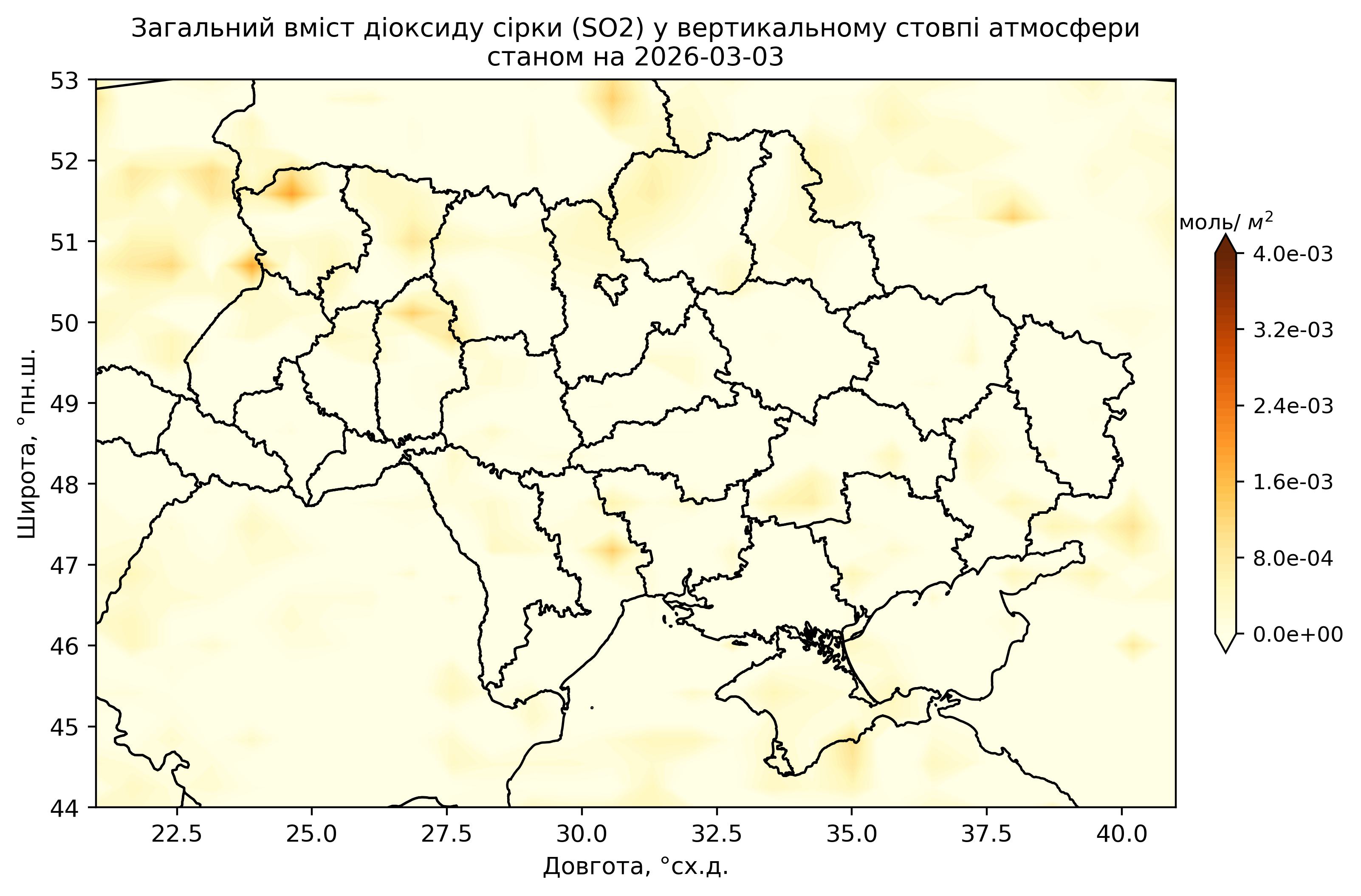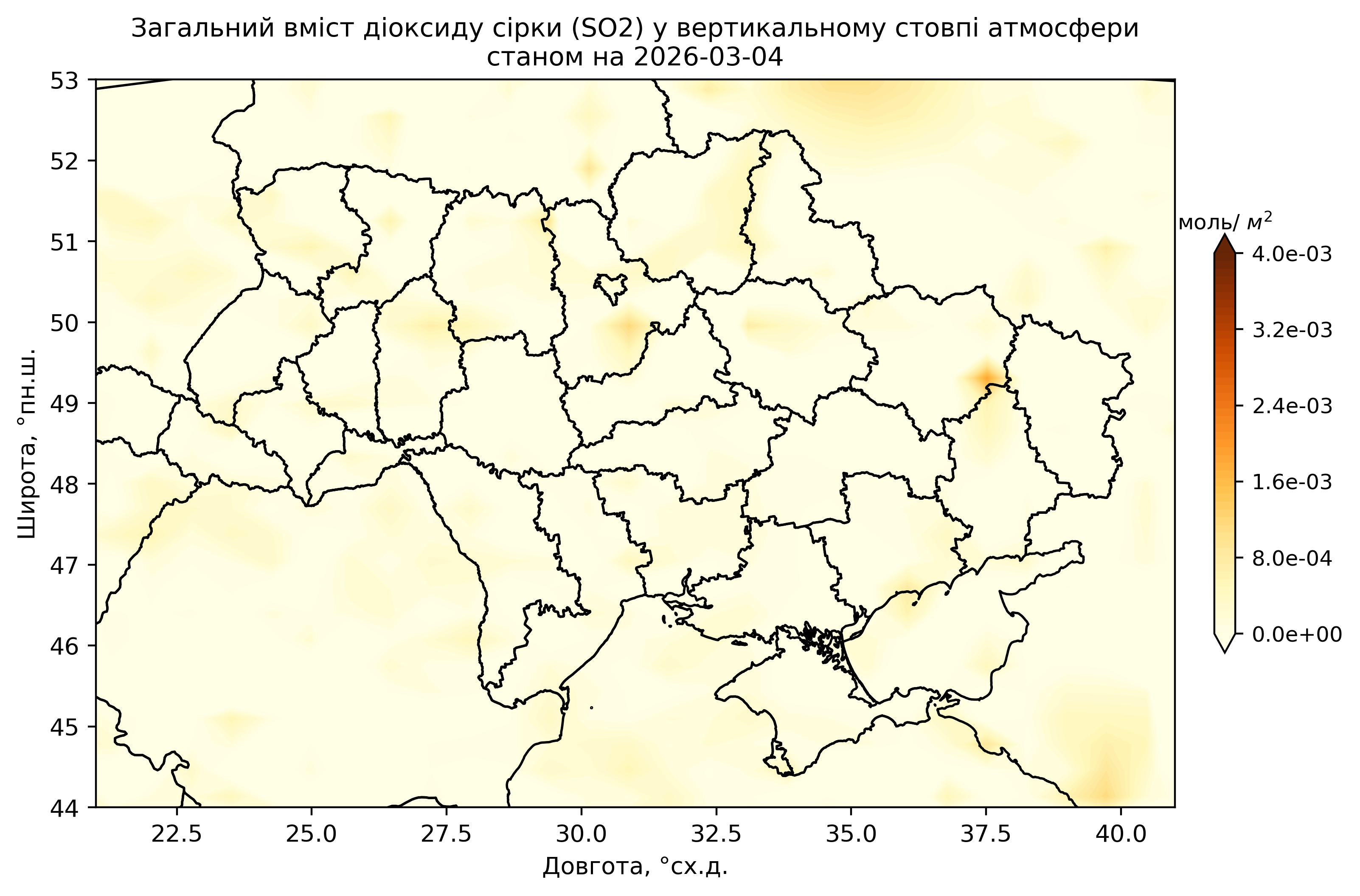 Загальний вміст діоксиду сірки (SO2) у вертикальному стовпі атмосфери