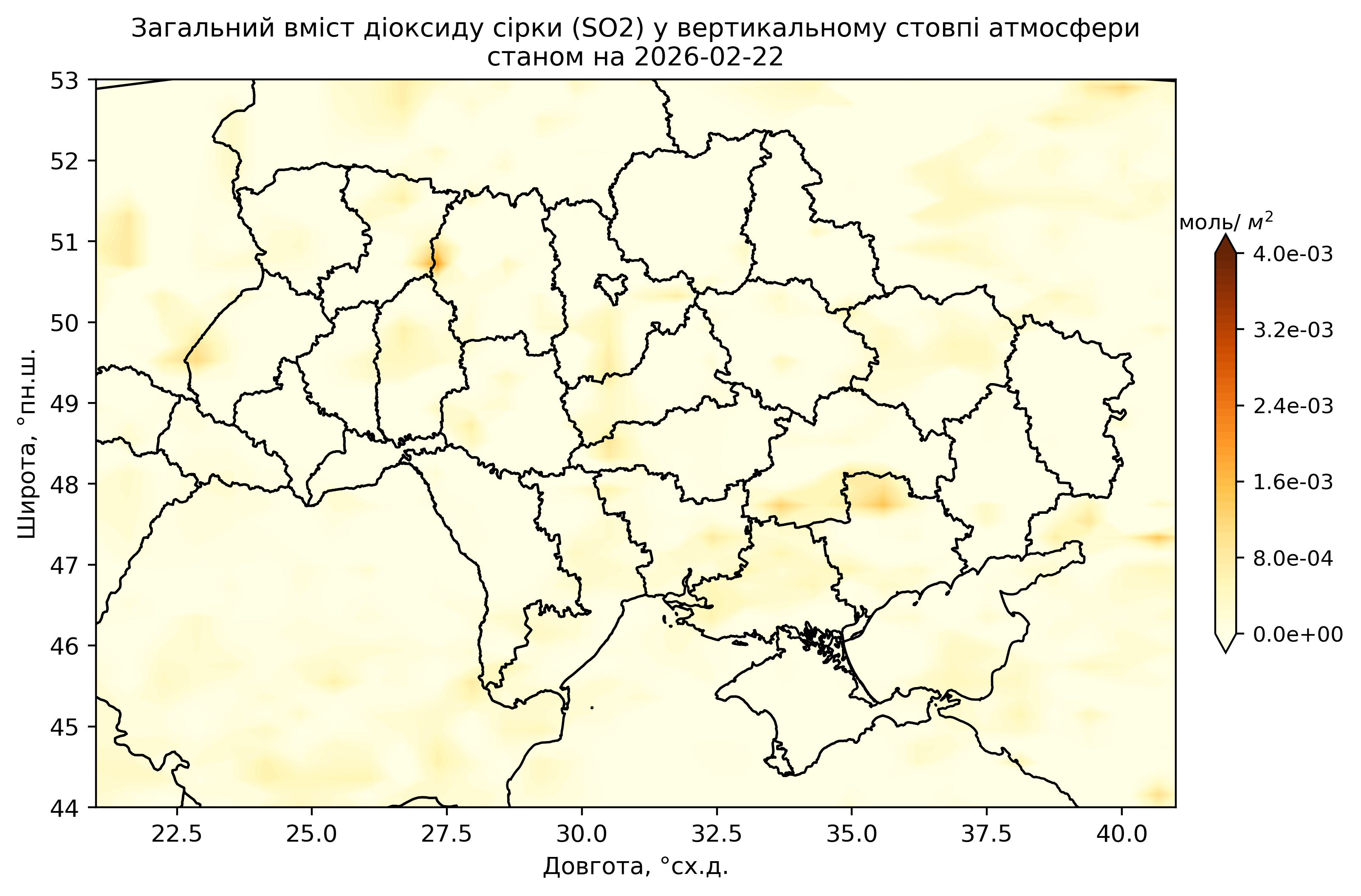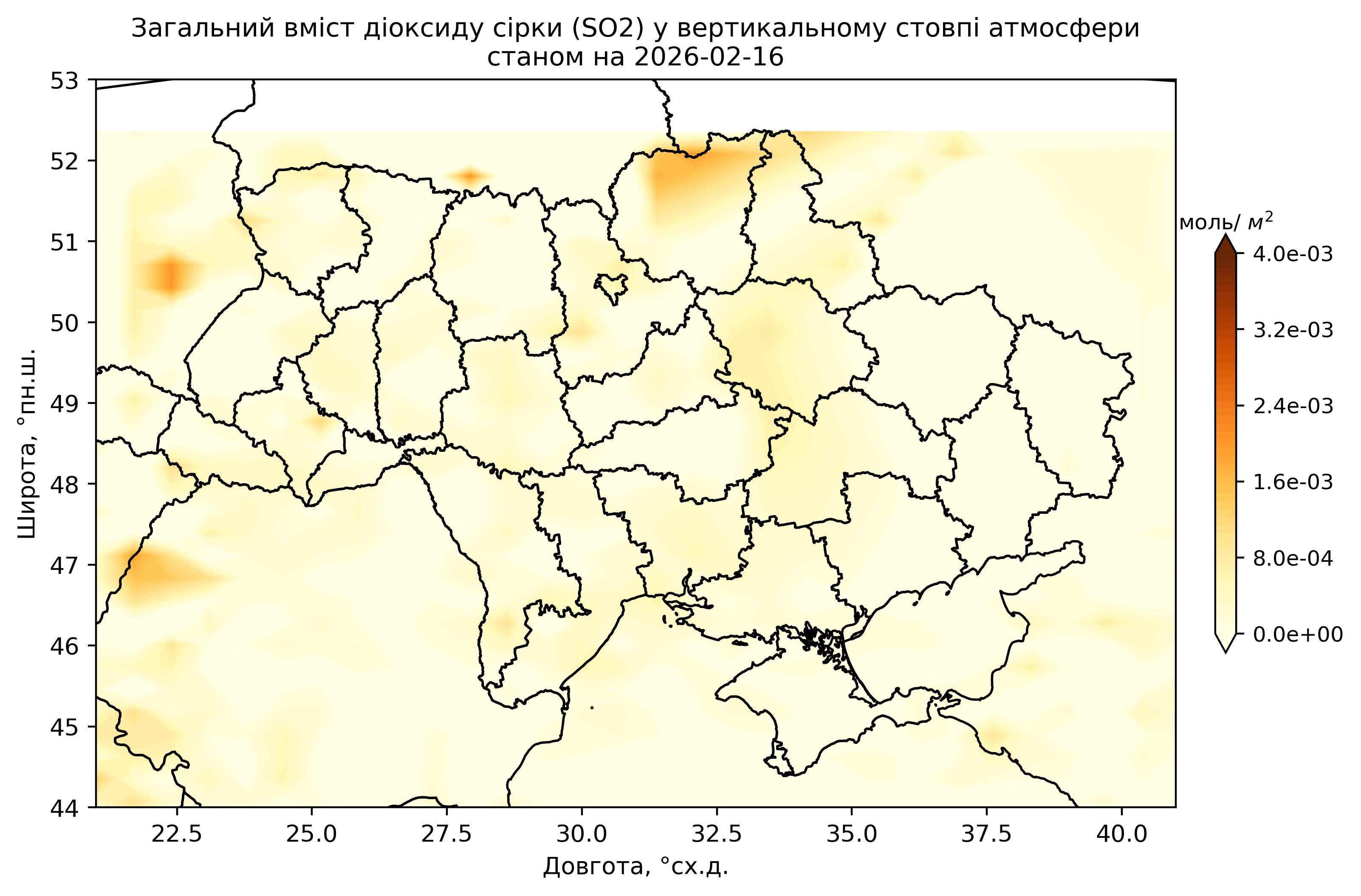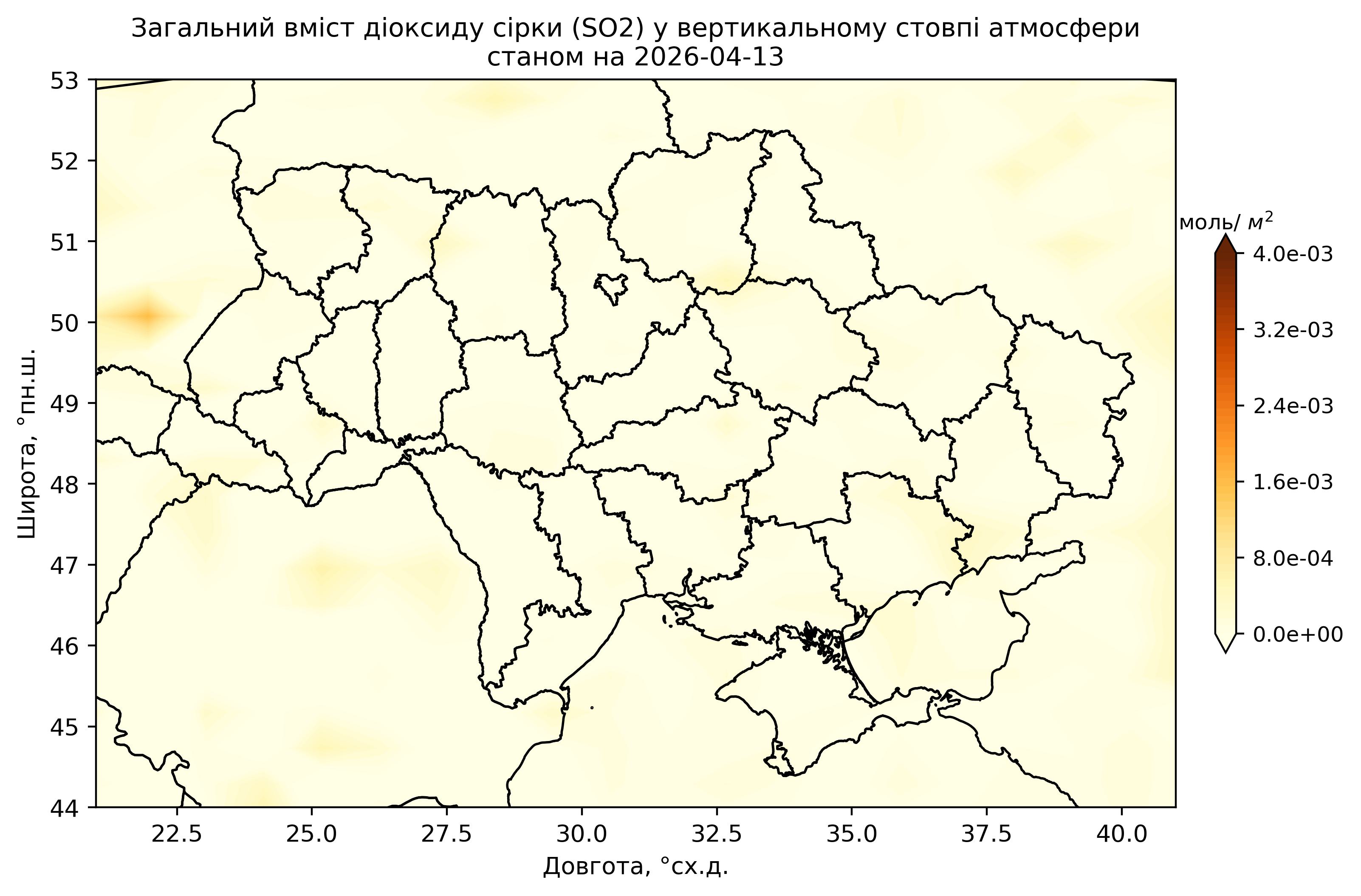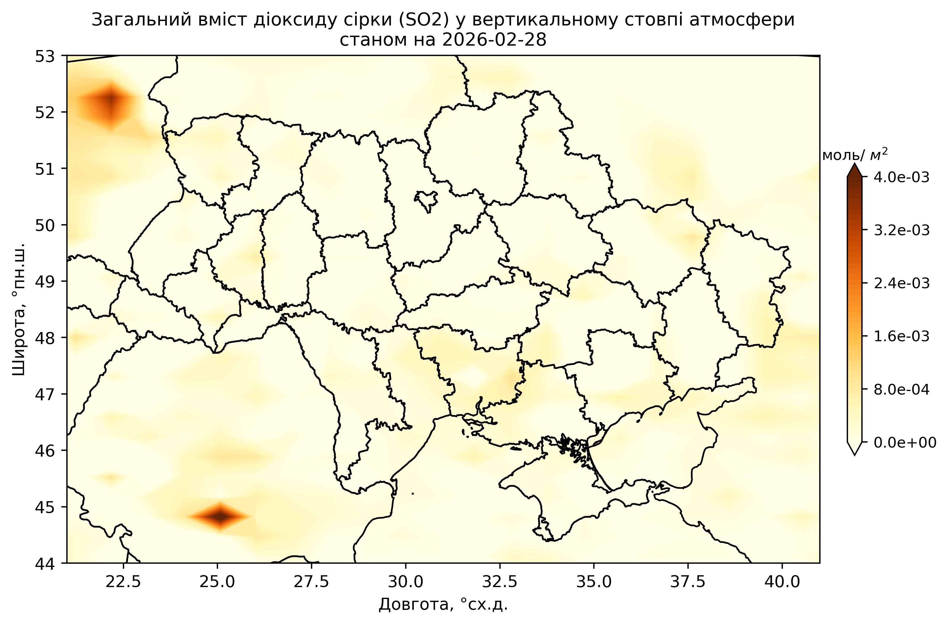 Загальний вміст діоксиду сірки (SO2) у вертикальному стовпі атмосфери