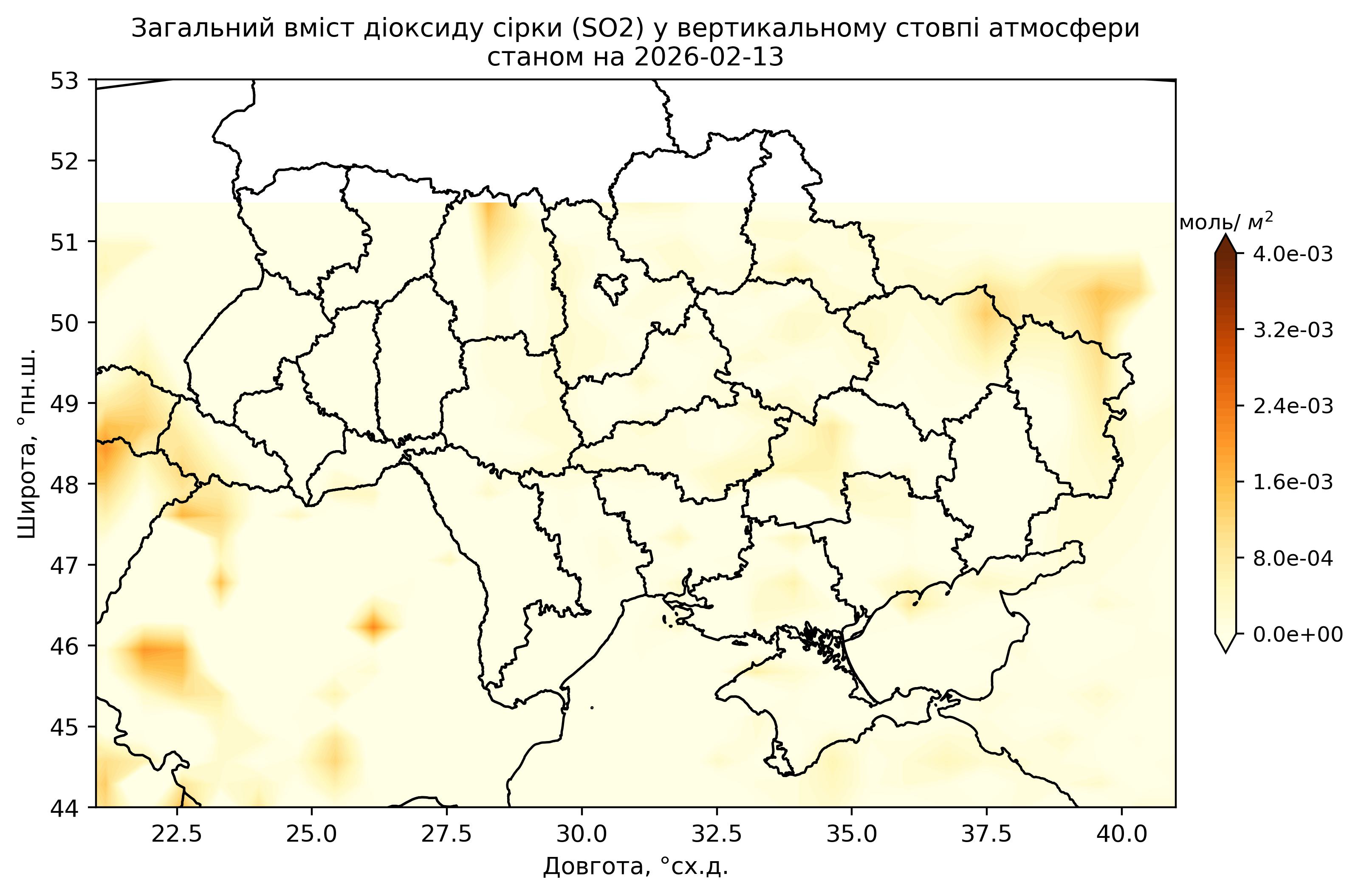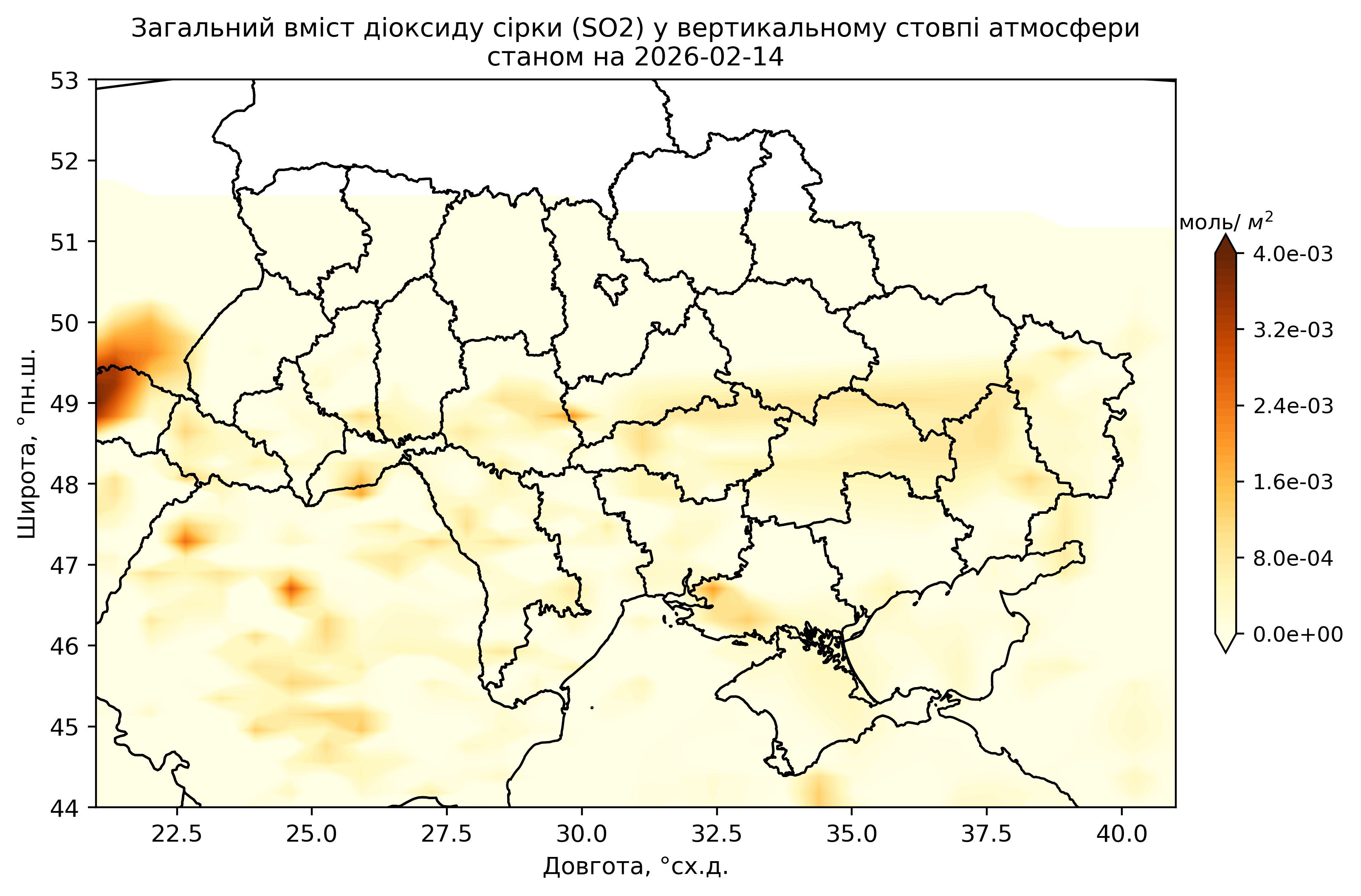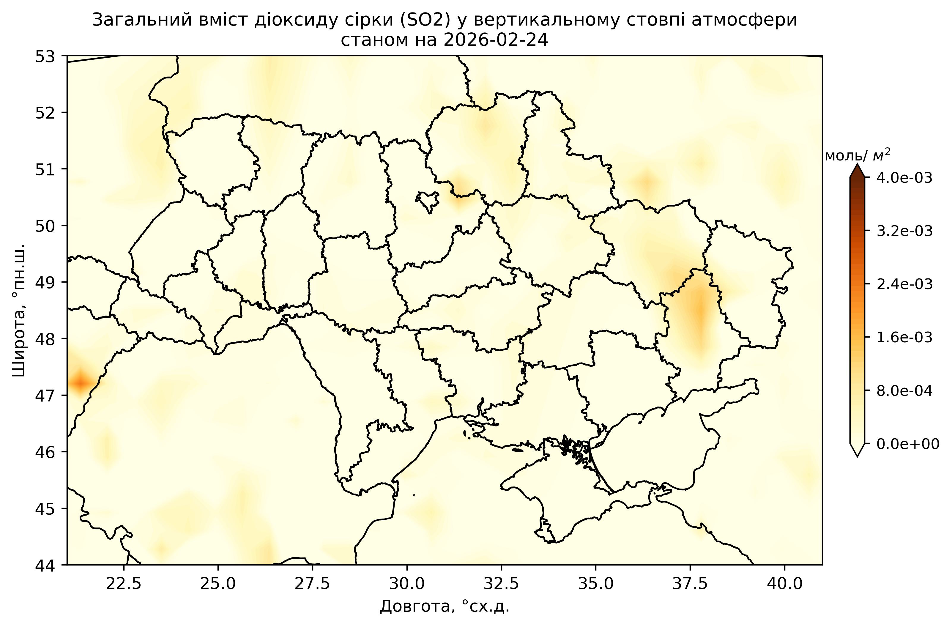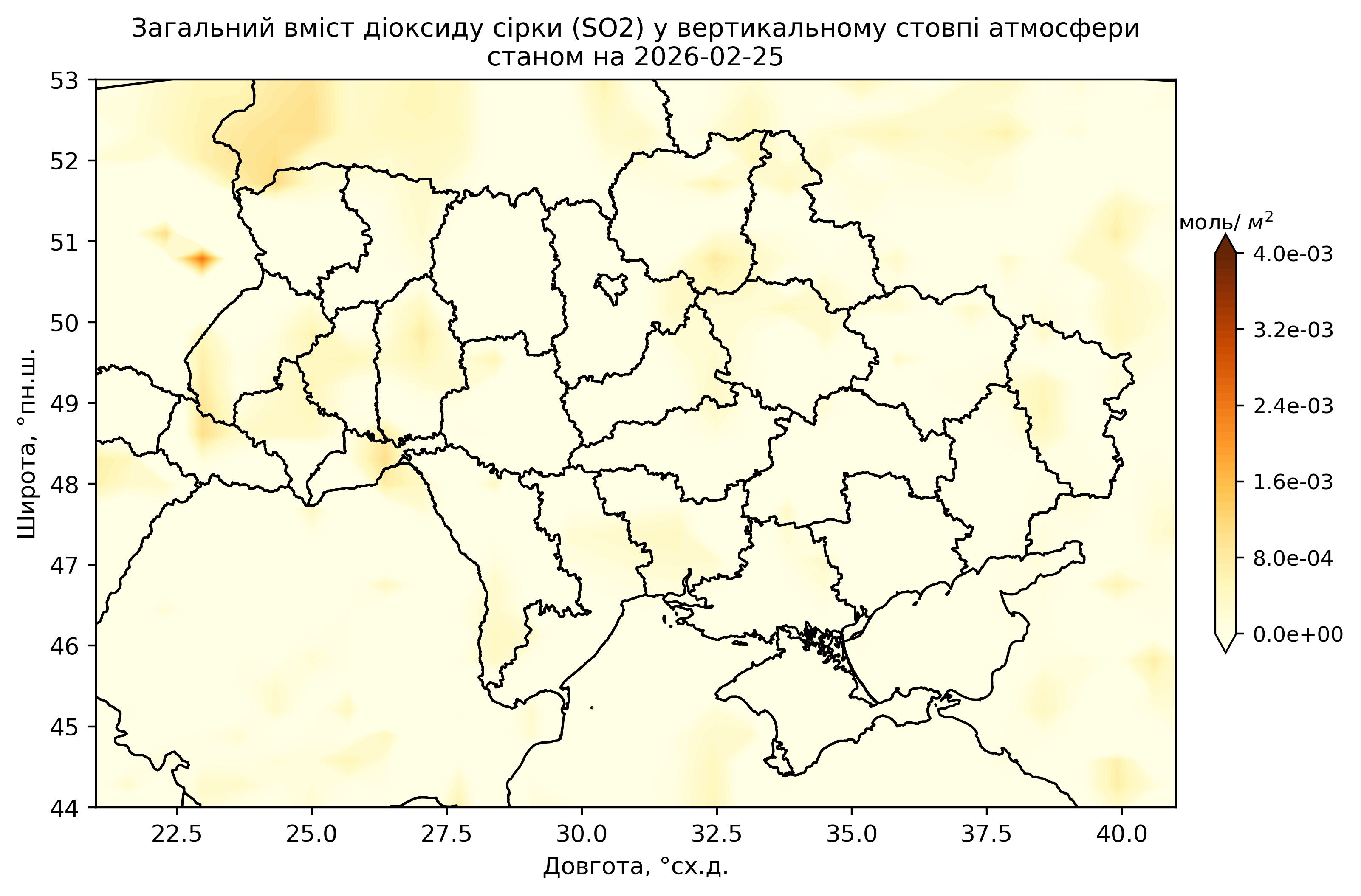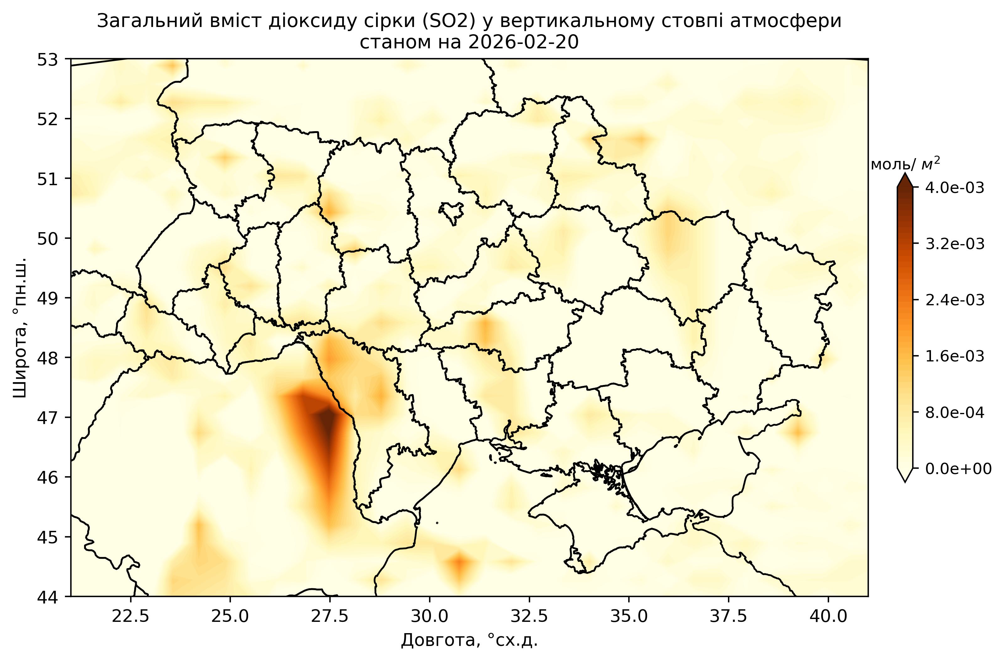 Загальний вміст діоксиду сірки (SO2) у вертикальному стовпі атмосфери